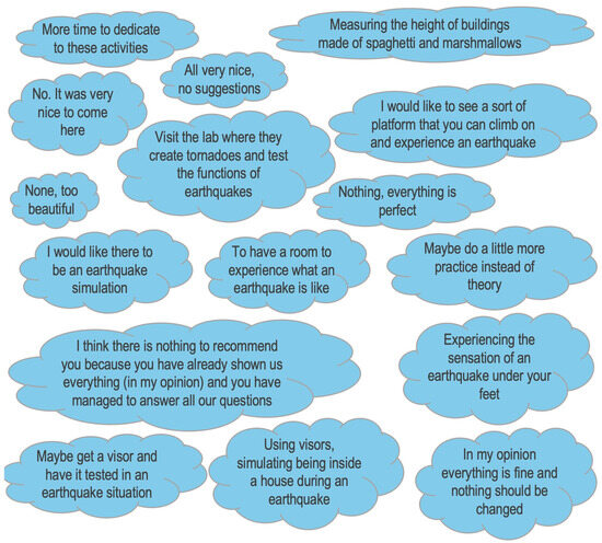 For the assessment of the Shake It! learning module, reference will be made to three editions of ScienzAperta held in 2023–2024, lasting 3 to 5 days, which involved more than 600 8th grade students from K-12 education. Shake It!” was part of an educational pathway that combined hands-on experimental activities with video gaming. The full program lasted approximately three hours and was specifically designed to engage young students with topics related to disaster risk mitigation and management. Alongside Shake It!, three to four additional learning modules were included: experimental laboratory activities focused on measuring earthquake-related parameters and site effects, and video games addressing the occurrence of earthquakes within the context of plate tectonics and preparedness actions [44].