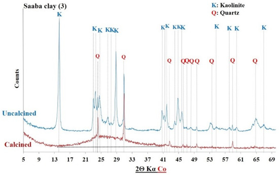XRD of Saaba clay before and after calcination.