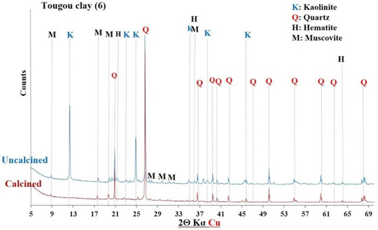 XRD of Tougou clay before and after calcination.