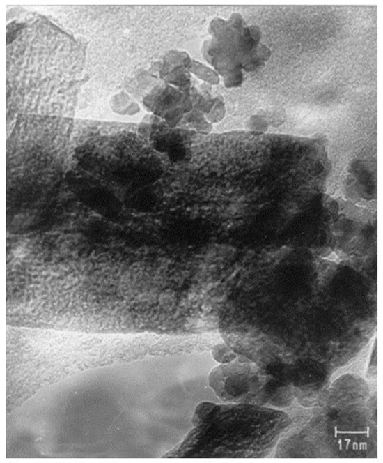 Brightfield TEM images of goethite after 16 h of grinding. Elongated particles were identified by electron diffraction as goethite, and the small rounded particles were identified as hematite (González et al., 2000) [27].