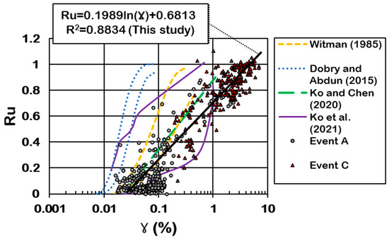 Comparison of EPWP ratio (Ru) and shear strain (γ) results with those of other studies [3,36,41,42].