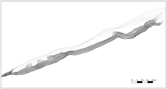 The topographic base obtained must be of the highest possible quality and precision, since the aim is to identify any millimeter-sized element that is susceptible to mobilization on the interior surface of the cavity. Therefore, the application of a 3D laser scanner is highly recommended [,]. With this technique, it is possible to obtain a three-dimensional topographic model of the cavity in absolute coordinates and with an accuracy of 1–3 mm, which allows the evolution of the interior surface to be monitored over time. The scanning must be repeated occasionally, depending on the state of the cave, recommended annually or after the occurrence of unforeseen events (construction work, earthquakes, volcanic eruptions, floods).