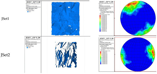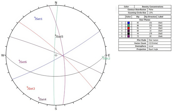 Geometrical and statistical characteristics of the six joint sets and geomechanical parameters of the intact rock and discontinuities [35,36].