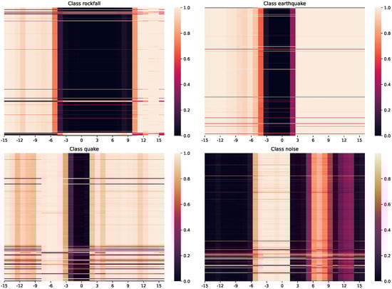 In the catalogue [], the challenge of expert labelling is obvious, indicating that there are a number of events which, although labelled as one class, contain a note suggesting there may be doubt. The value of expert labelling with the support of machine learning, especially for uncertain events, is described in the human in the loop approach of []. As shown in in the third column of Table 1, uncertainty occurs most frequently within the microseismic class, where 15 events are noted as being possible rockfalls and 2 possible earthquakes. Within the earthquake class, there are also nine teleseismic events between 12 and 25 October 2013, possibly aftershocks of the 2013 Bohl earthquake. The teleseismic events are longer duration than the other earthquake events (around 40 to 60 s), and hence are likely to lead to classification errors. We take all of the catalogue labels as ground truth during training and testing, and show examples of a label that differs from its class in Section 3.3, concluding that they are most likely mislabelled. This underscores the importance of the proposed work.