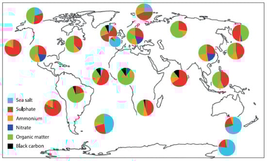 Distribution of major chemical aerosols on a global scale. Source: Reprinted with permission from Carslaw e Pringle (2022) []. © 2022 Elsevier B.V. All rights reserved.