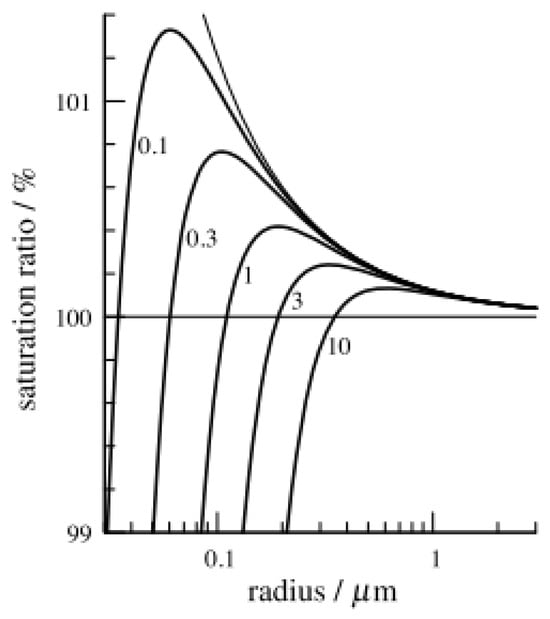 In the following sections, a detailed analysis of Köhler’s theory is presented, which is based on the Kelvin and Raoult effects, which are integral to the theory and describe the mechanism of particle activation in CCN.