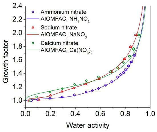 - Lv, M.; Wang, T.; Huang, J.; Sun, Y.; Wang, Z.; Chen, L.; Zhang, J.; Zhao, C.; Shen, L.; Wu, Z. Hygroscopic growth of atmospheric aerosol particles based on lidar, radiosonde, and in situ measurements: Case studies from the Xinzhou field campaign. J. Quant. Spectrosc. Radiat. Transf. 2017, 188, 60–70. [Google Scholar] [CrossRef]