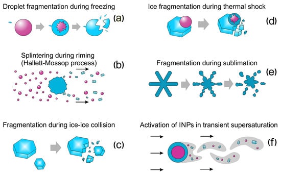 - Zhao, X.; Liu, X. Primary and secondary ice production: Interactions and their relative importance. Atmos. Chem. Phys. 2022, 22, 2585–2600. [Google Scholar] [CrossRef]