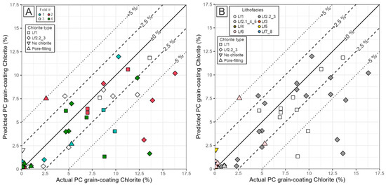 Machine learning is the use of computational methods to identify patterns in data without being explicitly programmed, typically with the intention of creating robust predictive models for application to unknown samples [30]. In the context of oil and gas exploration, machine learning has been utilised to aid reservoir quality prediction in a variety of geological settings, employing different data types [31,32,33,34]. Supervised machine learning algorithms train models to classify samples with a known continuous (e.g., chlorite abundance, porosity) or discrete classification label (e.g., facies, lithology) using associated data as predictors (e.g., wireline) [35,36,37,38]. Wireline log data have been used as predictors for diagenetic facies or lithology, or to directly predict reservoir properties in machine learning models [33,34,39], and could be adapted to predict chlorite grain coat abundance. The present study contributes to the growing literature on the use of machine learning methods for lithofacies and permeability prediction in hydrocarbon exploration and reservoir characterisation, with the addition of grain coating chlorite quantification, which is key to understanding many reservoirs [40,41,42,43,44]. The ability of machine learning methods to outperform conventional methods for predicting reservoir quality parameters, and their ability to provide additional geological information, such as lithofacies, highlights the advantages of machine learning use over other statistical methods [39,45].