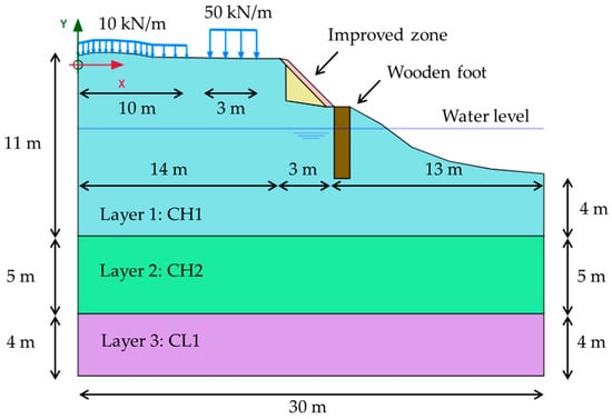 Geological conditions of soil layers beneath the embankment [42].