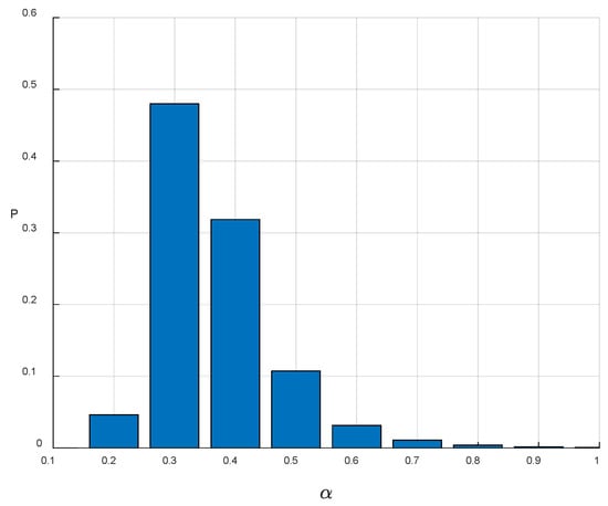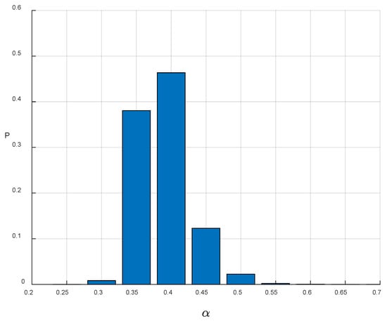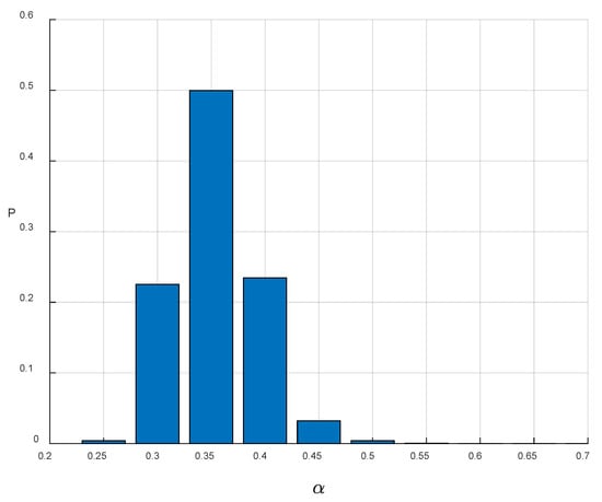 , which represents the distribution of α-values, can then be computed using Equation (5).