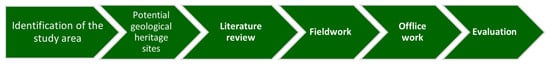 Steps used to conduct the inventory and assessment of the geological heritage of the Príncipe Island. Modified after [34].