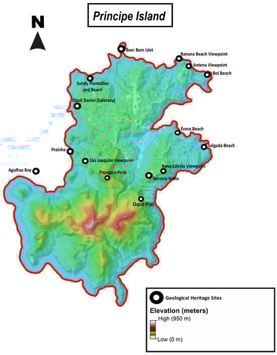 - Neto, K.; Henriques, M.H. Geoheritage of the Príncipe UNESCO World Biosphere Reserve (West Africa): Selected Geosites. Geoheritage 2023, 15, 118. [Google Scholar] [CrossRef]