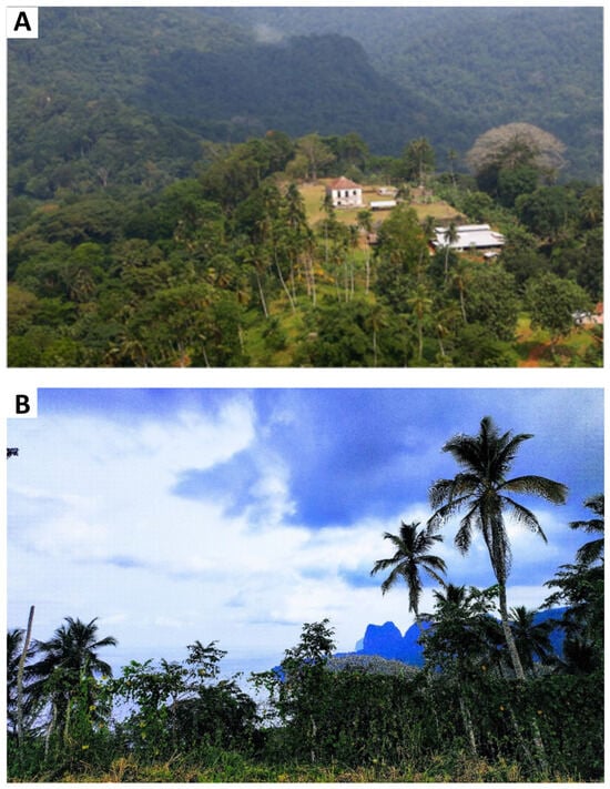 (A) Roça Terreiro Velho; (B) Terreiro Velho viewpoint.