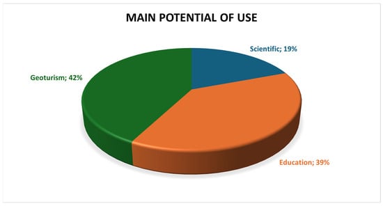 It is imperative to acknowledge the geoconservation priorities of a given territory to substantiate the political options associated with the respective development strategies (see Table 2). The majority of geosites that have gained recognition tend to experience significant social utilization, as their accessibility often serves as a crucial factor in their transformation into tourist attractions.