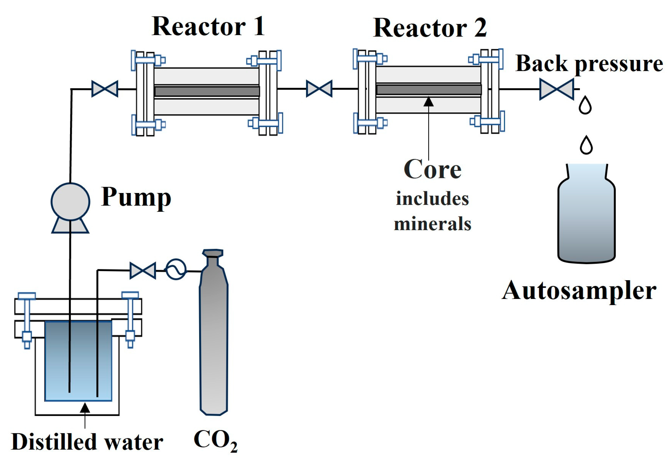 Yang, H.; Ueda, A.; Kuramitz, H.; Satake, S.; Masuoka, K.; Terai, A. Andesite and CO2-Saturated Water Interaction at Different Temperatures and Flow Rates Using a Flow-Through Reactor. Geosciences 2025, 15, 351. https://doi.org/10.3390/geosciences15090351