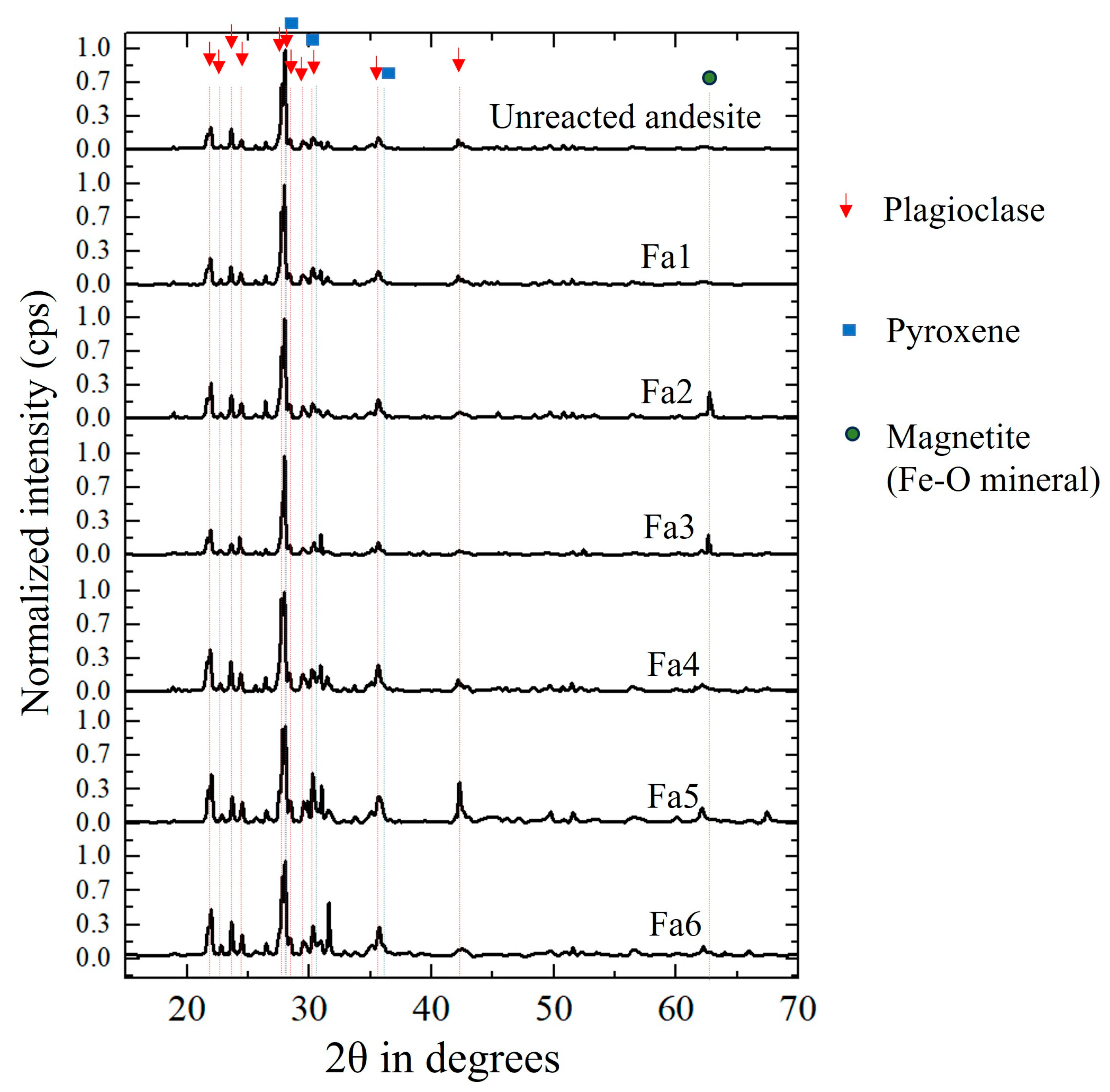 - Takeya, M.; Matsui, R.; Kobayashi, Y. Evaluating the potential for CO2 mineralization in andesite: Experiments and geochemical modeling. In Proceedings of the 17th International Conference on Greenhouse Gas Control Technologies, Calgary, AB, Canada, 20–24 October 2024. [Google Scholar]