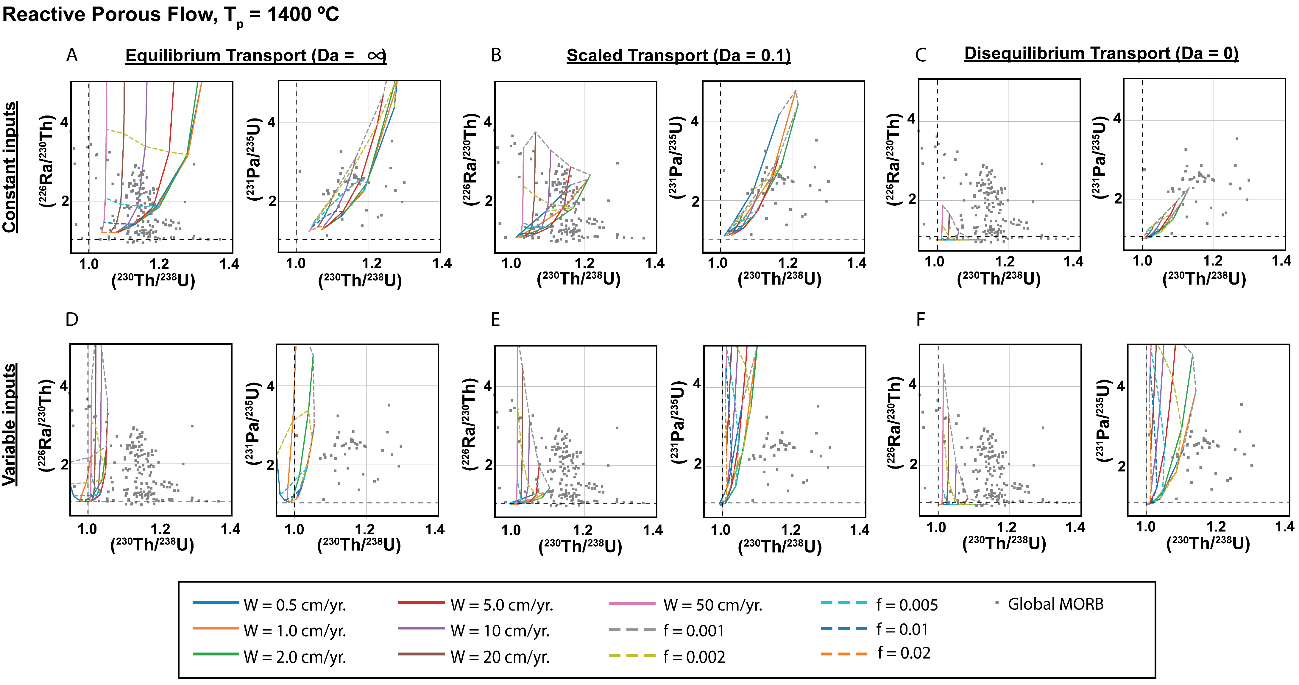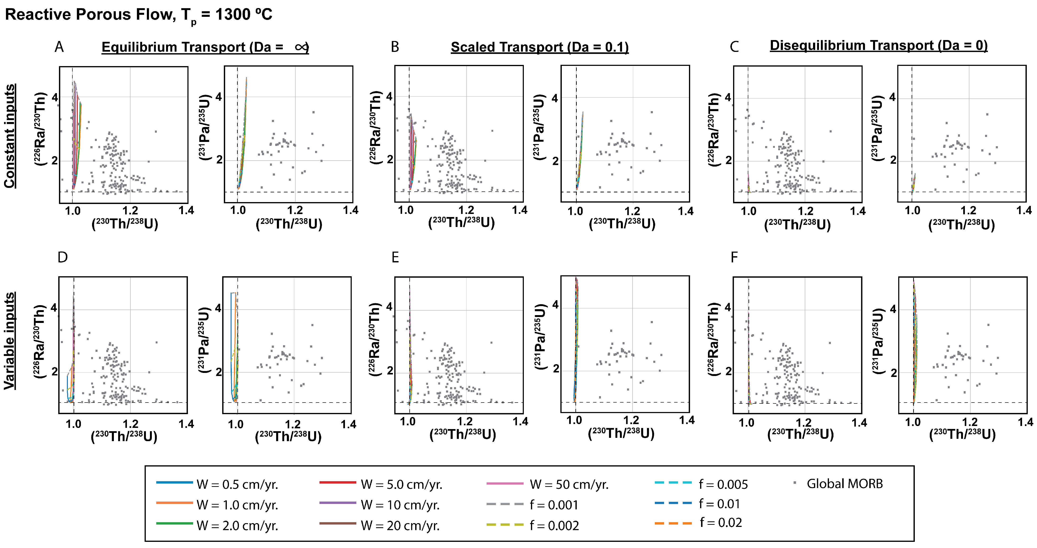 - The initial extent of disequilibria in all lavas under consideration is the same, which requires the sources of all lavas to have constant Th/U, Ra/Th, and Pa/U. This further requires that lavas were generated by similar degrees of melting at similar depths of melting from a relatively homogenous mantle source that had not recently lost partial melts. It also requires that all melts have similar transport rates (e.g., [26,52,53,107]).