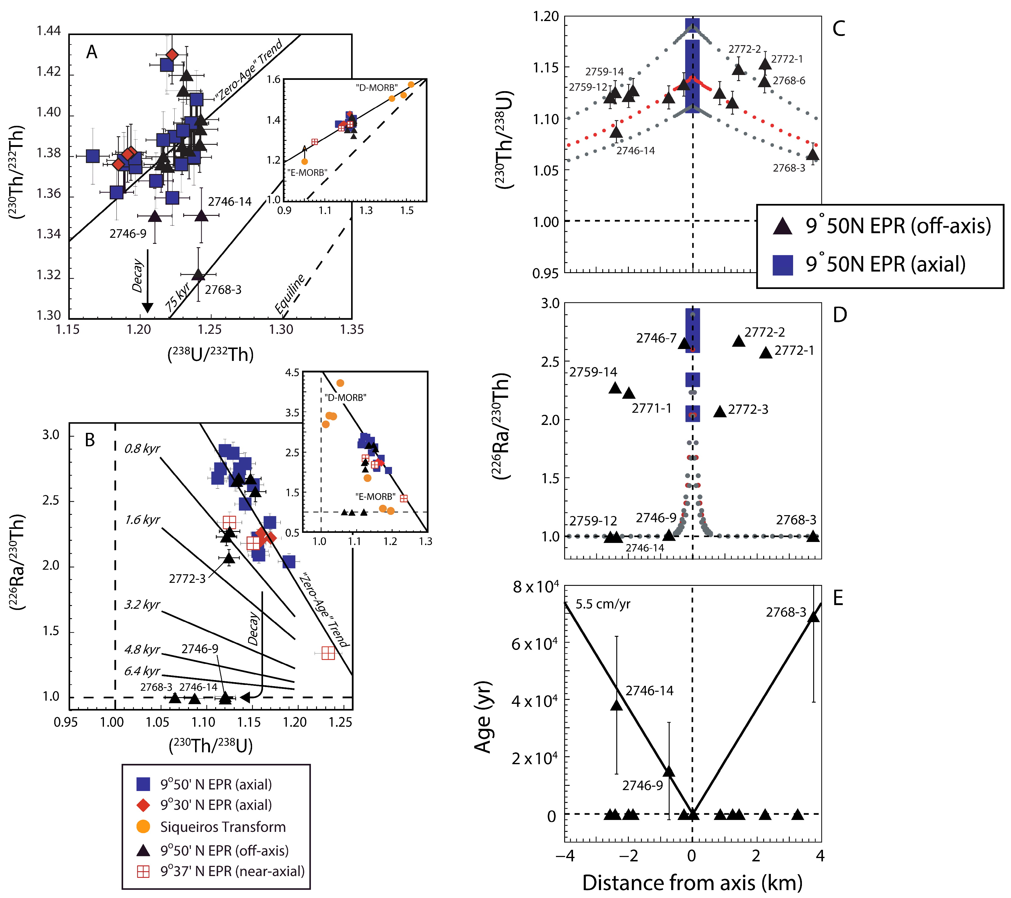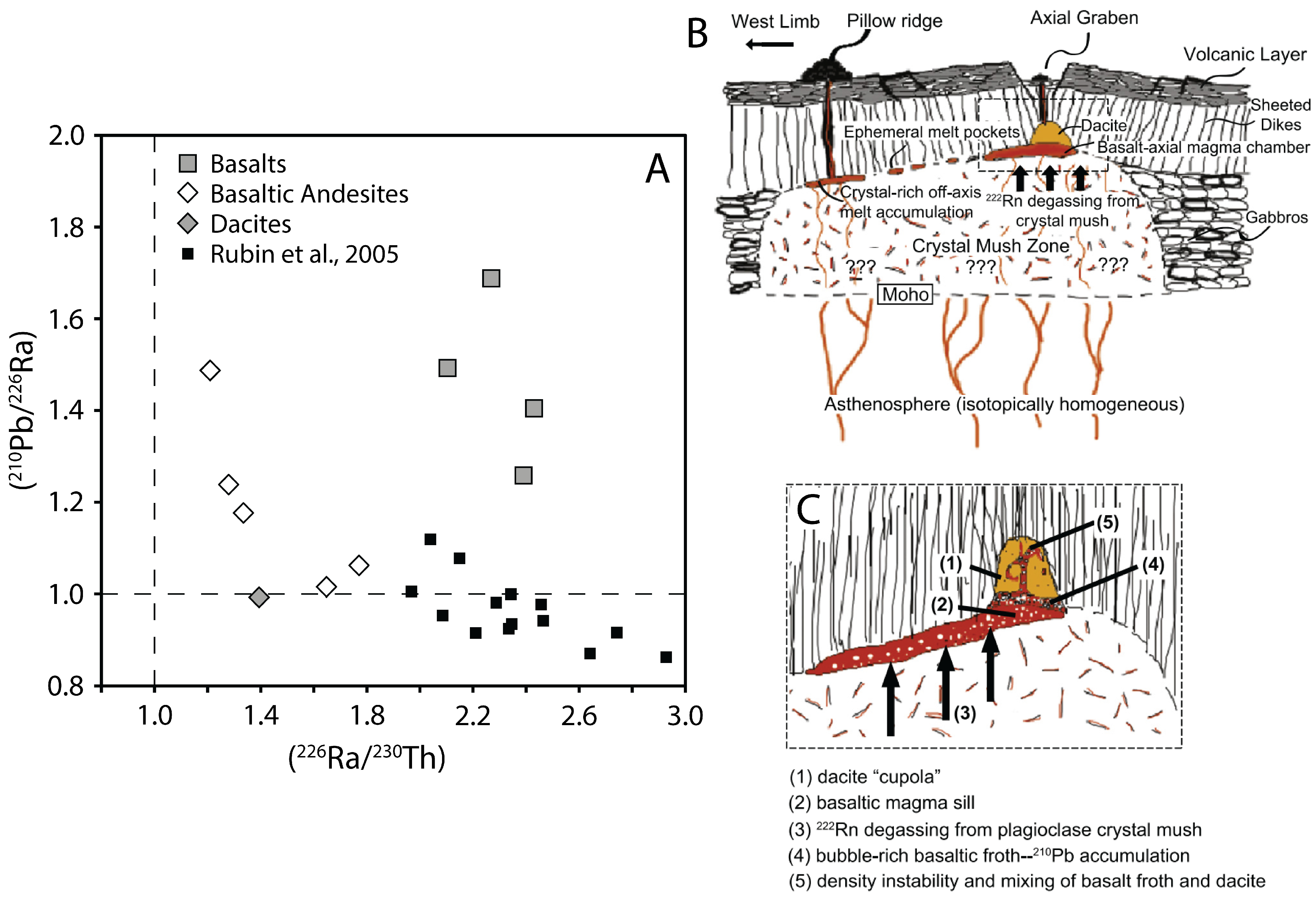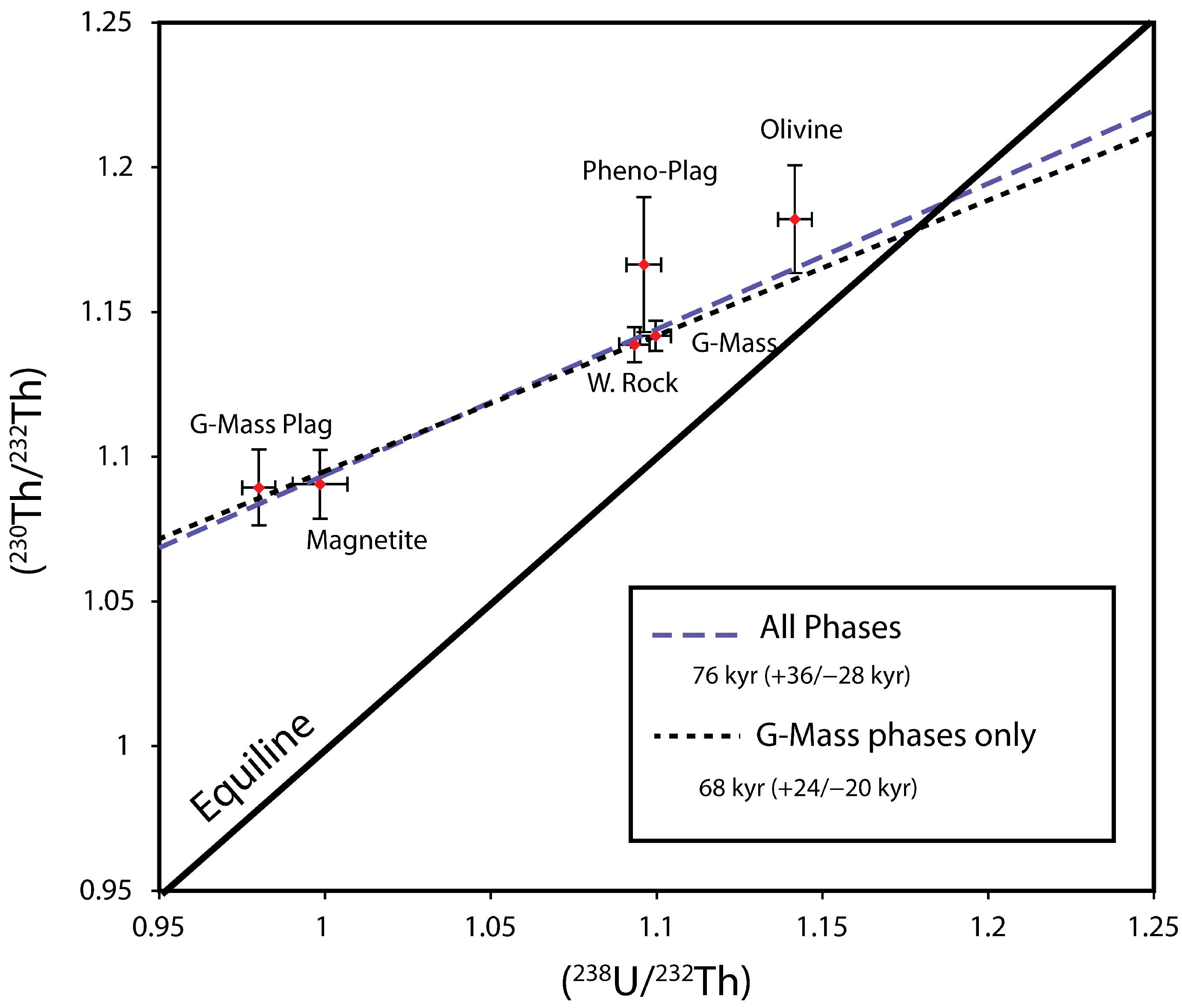- U-series disequilibria were initially created by primary magmatic processes and the lavas being dated have not undergone significant secondary alteration. The lavas have remained a closed system with respect to Th/U, Ra/Th, and Pa/U after eruption.
