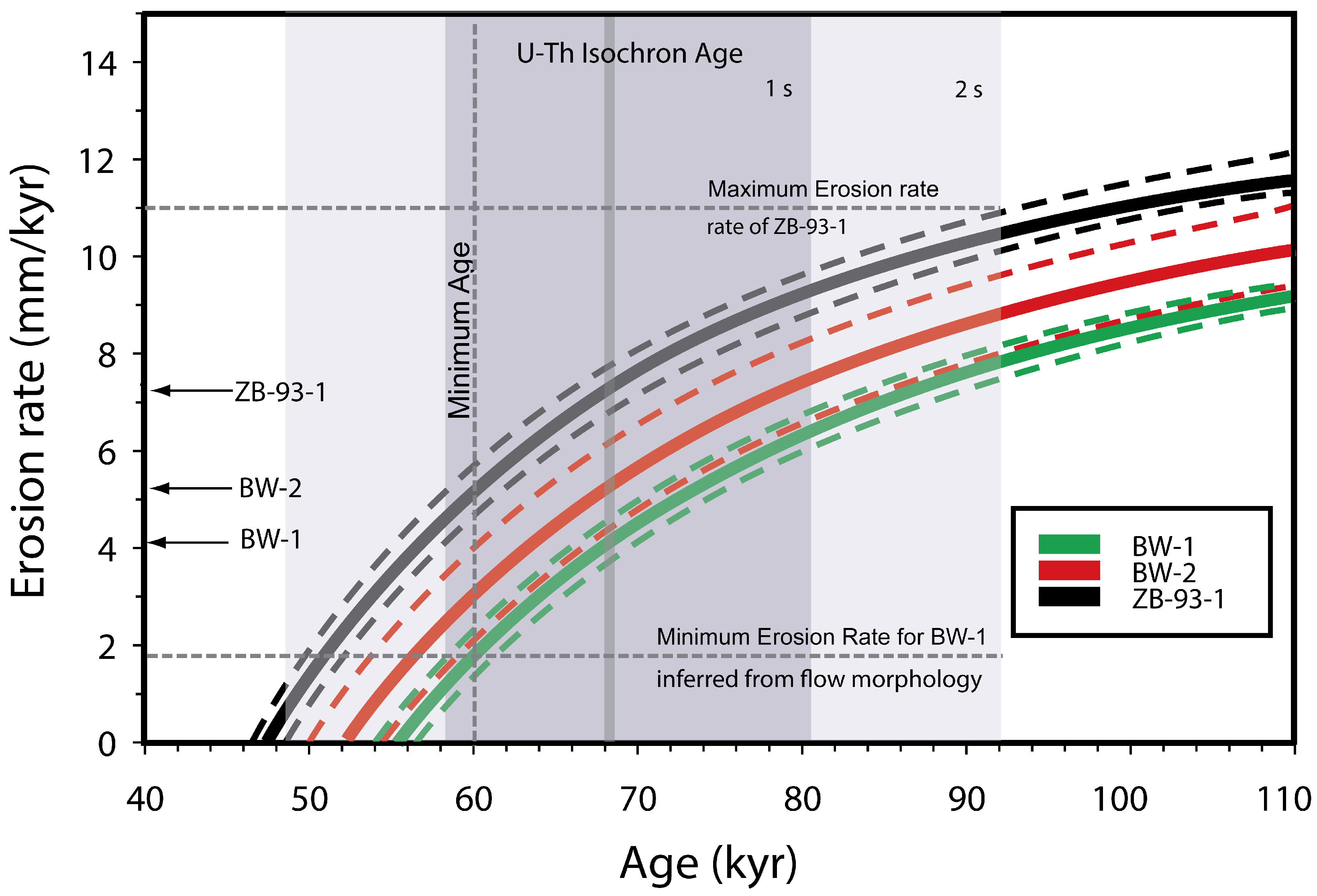 4.1. Establishing Lava Eruption Age Limits Based on the Presence or Absence of U-Series Disequilibria