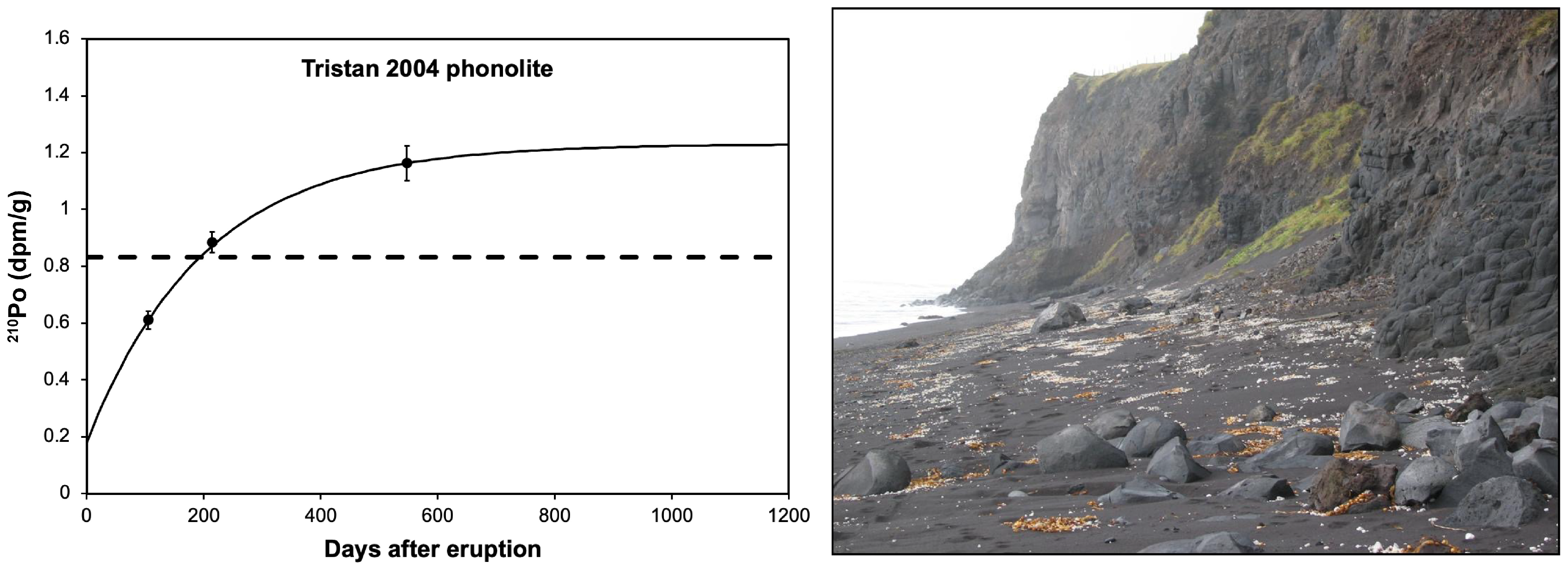 - Section 5 presents the application of 226Ra-210Pb-210Po disequilibria to establishing the timescales of magma recharge and degassing, which is directly linked to a volcano’s activity and fundamental to our understanding of physical eruption dynamics and hazard assessment. We look at three specific examples: Kilauea in the Hawaiian Archipelago, Tristan de Cunha in the South Atlantic Ocean, and Mount Erebus Volcano in Antarctica.