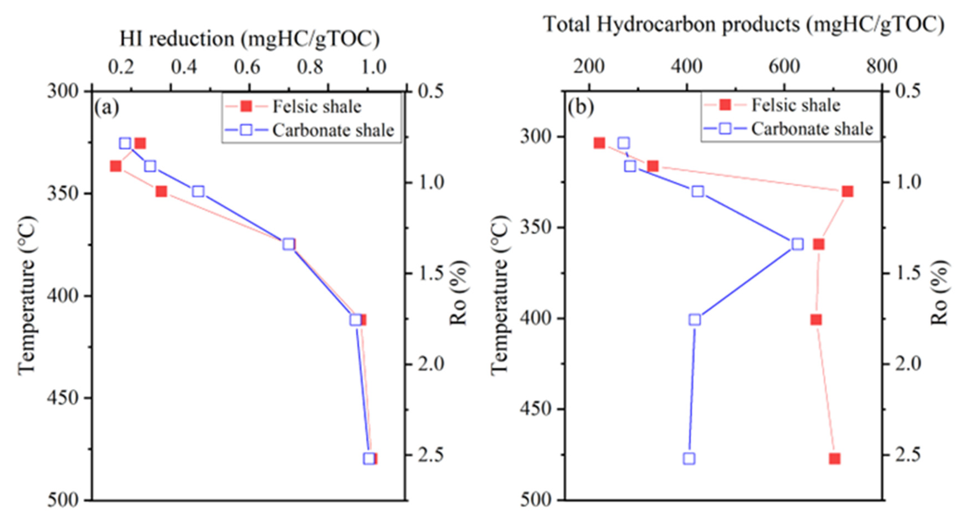 - Liao, L.; Wang, Y.; Chen, C.; Shi, S.; Deng, R. Kinetic study of marine and lacustrine shale grains using Rock-Eval pyrolysis: Implications to hydrocarbon generation, retention and expulsion. Mar. Pet. Geol. 2018, 89, 164–173. [Google Scholar] [CrossRef]