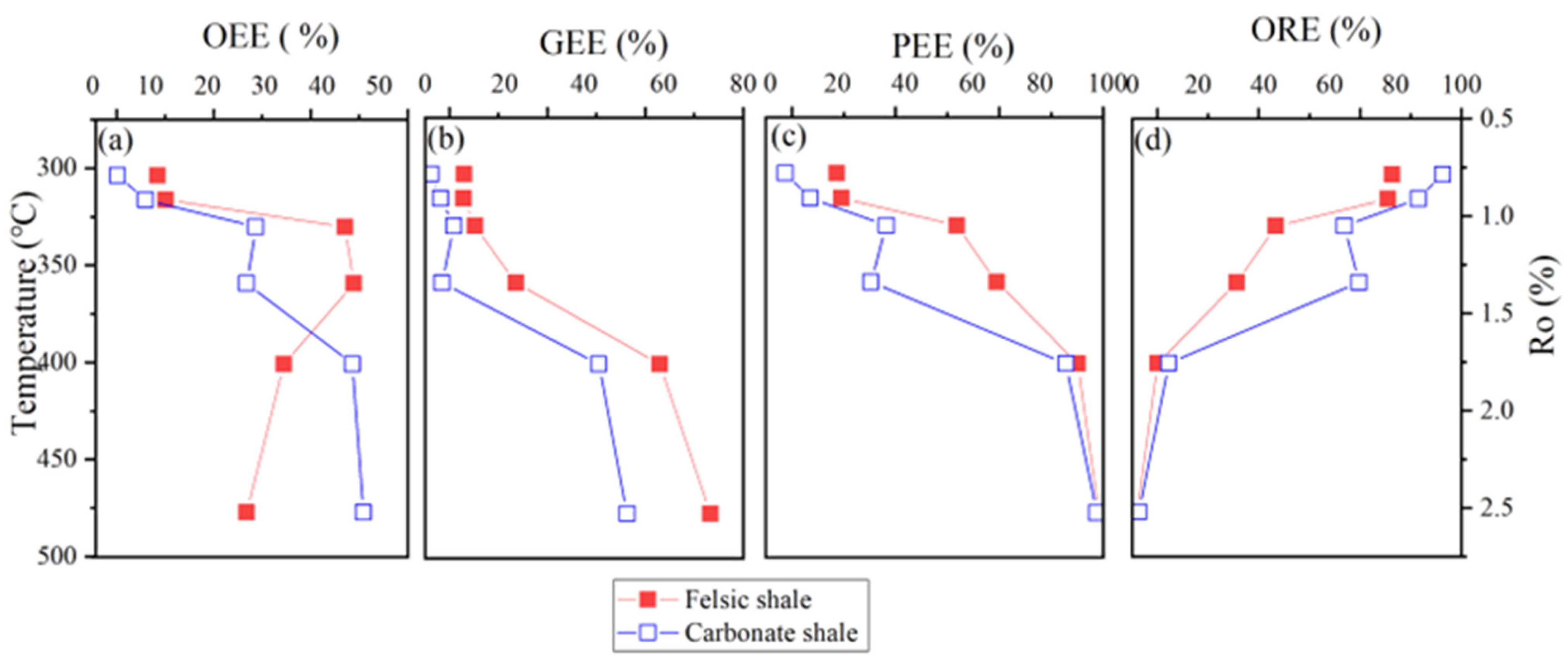 - Yang, S.; Wang, H.; Zheng, J.; Pan, Y.; Ji, C. Comprehensive review: Study on heating rate characteristics and coupling simulation of oil shale pyrolysis. J. Anal. Appl. Pyrolysis 2024, 177, 106289. [Google Scholar] [CrossRef]
