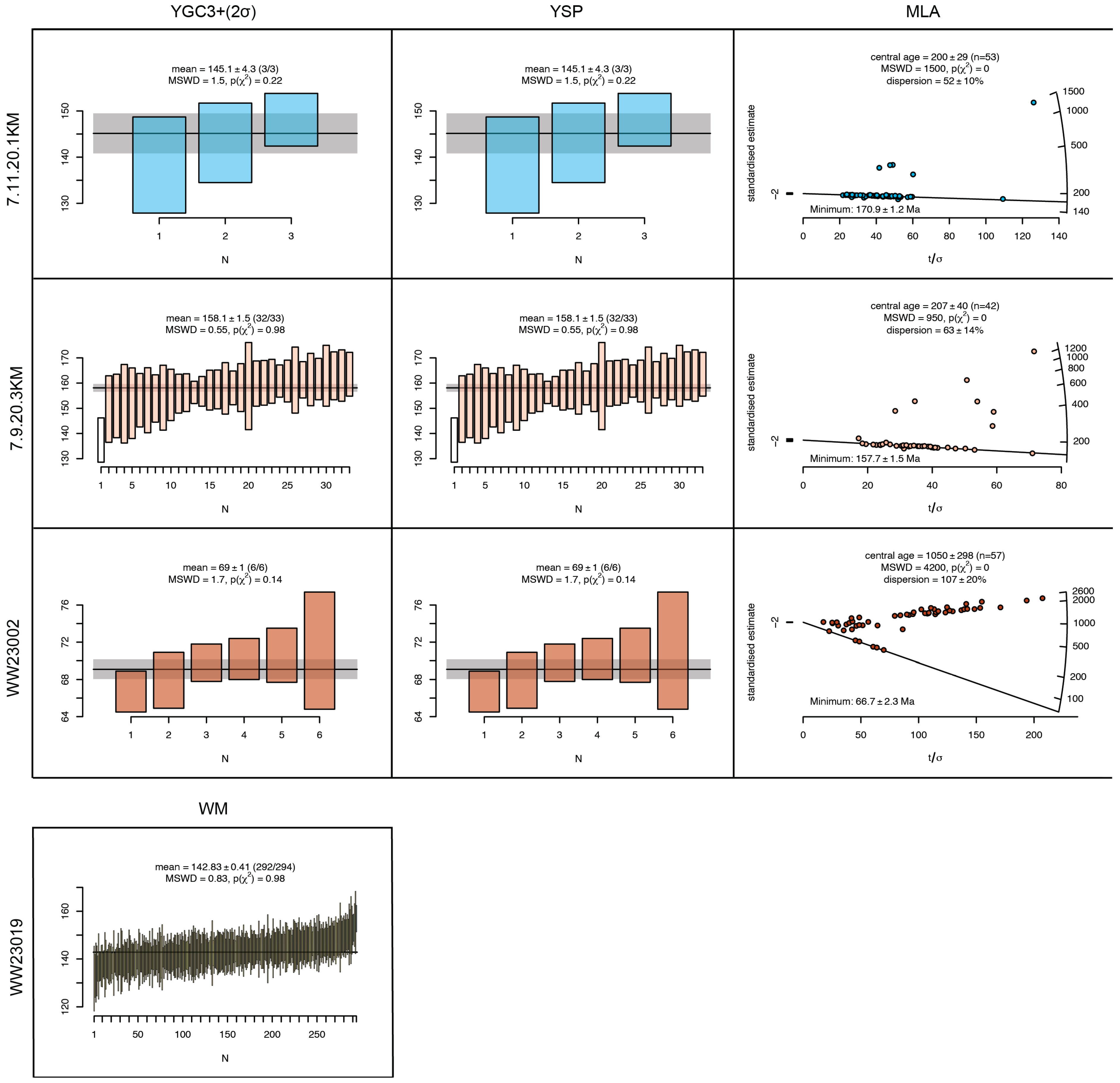 | YGC3+ (2σ) | Youngest grain cluster of three or more grains overlapping in 2σ error |