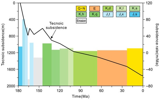 The characteristics of tectonic subsidence and the subsidence rate of well D3 in Fukang Sag.