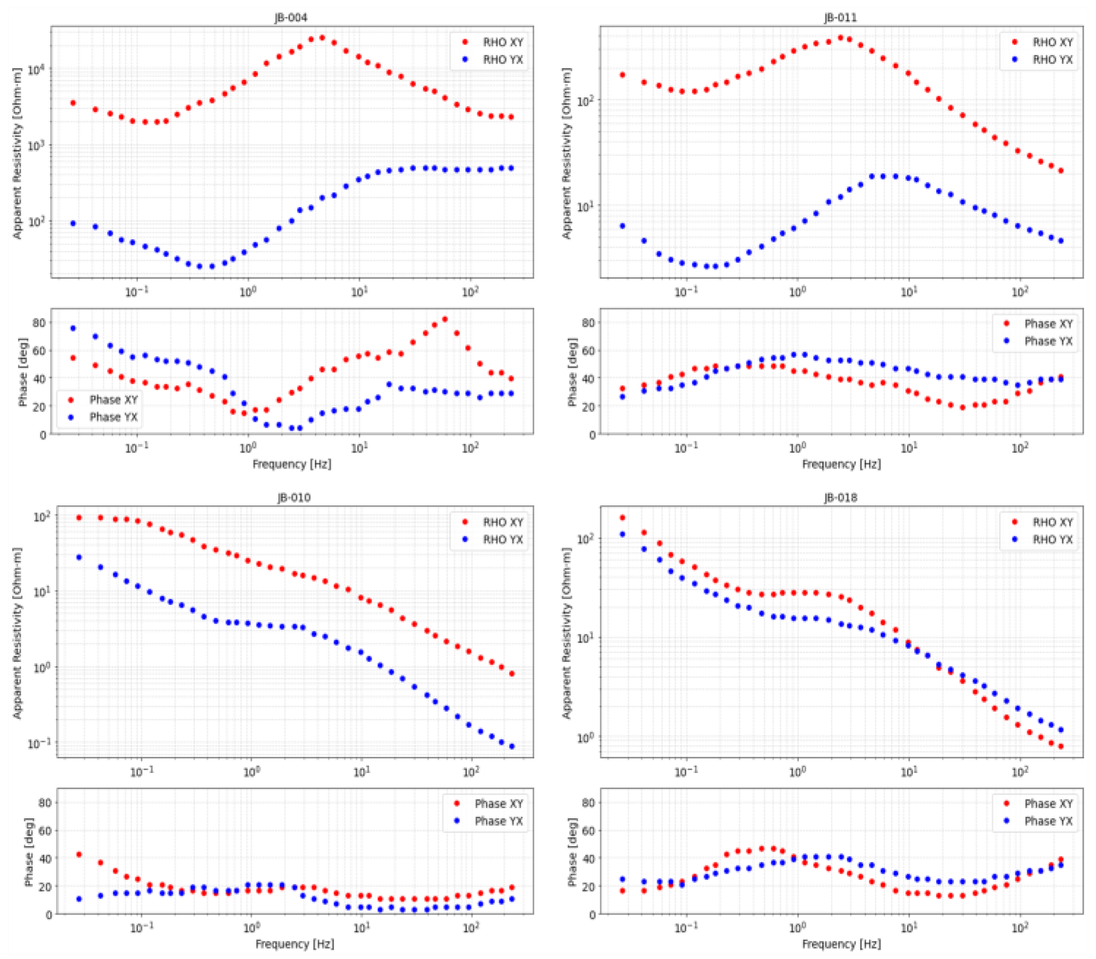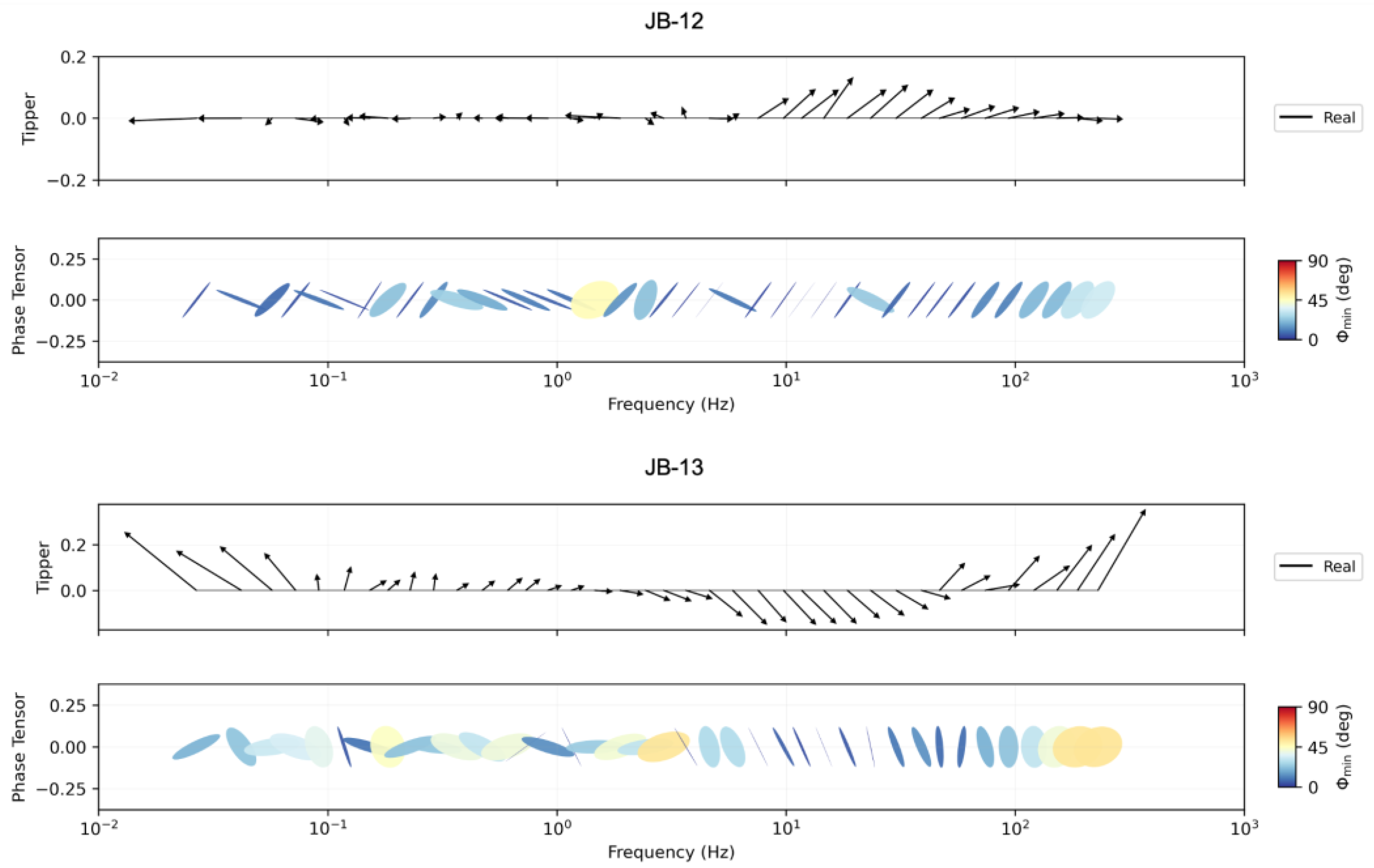 4.1. Rho Apparent, Tipper, and Phase Tensor