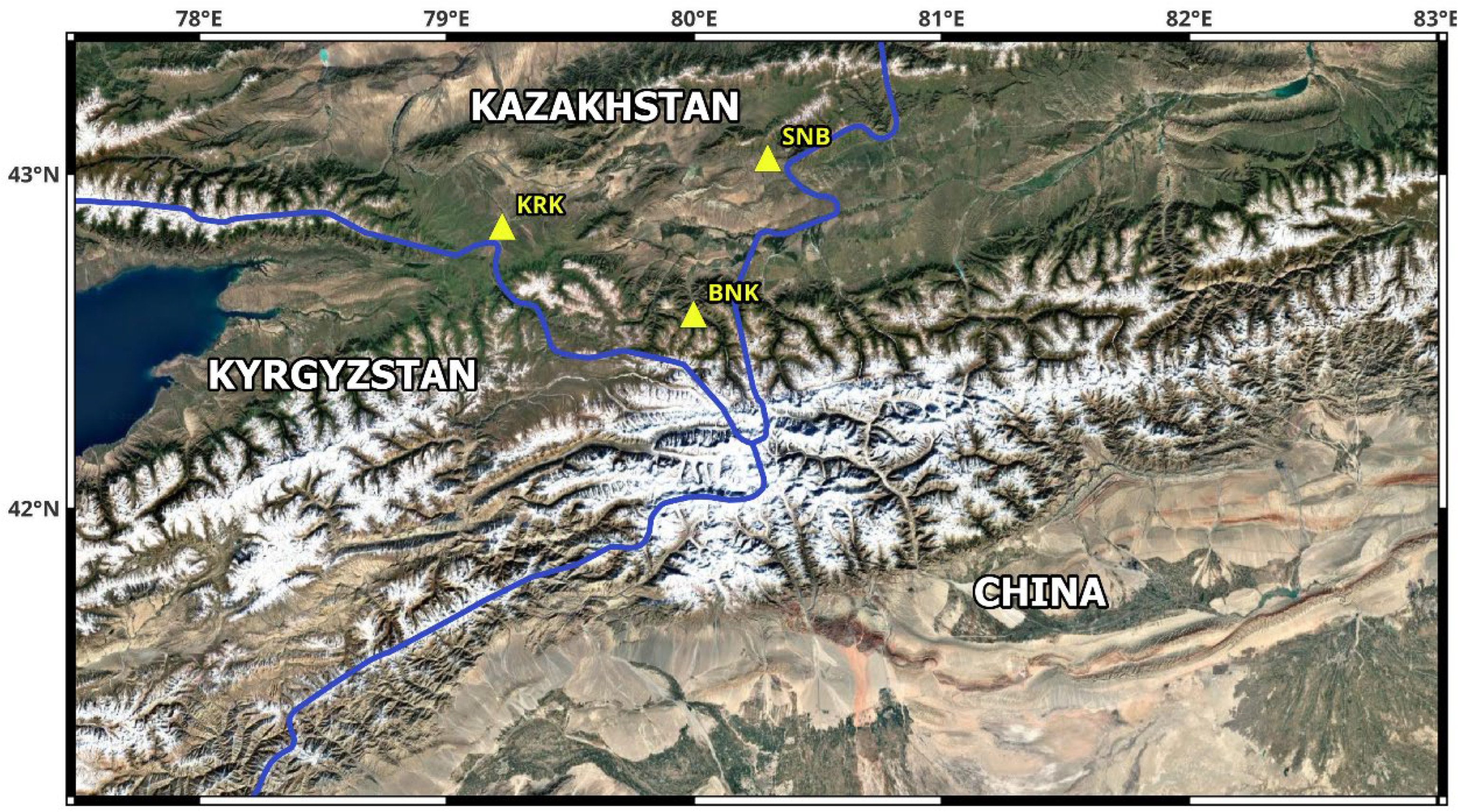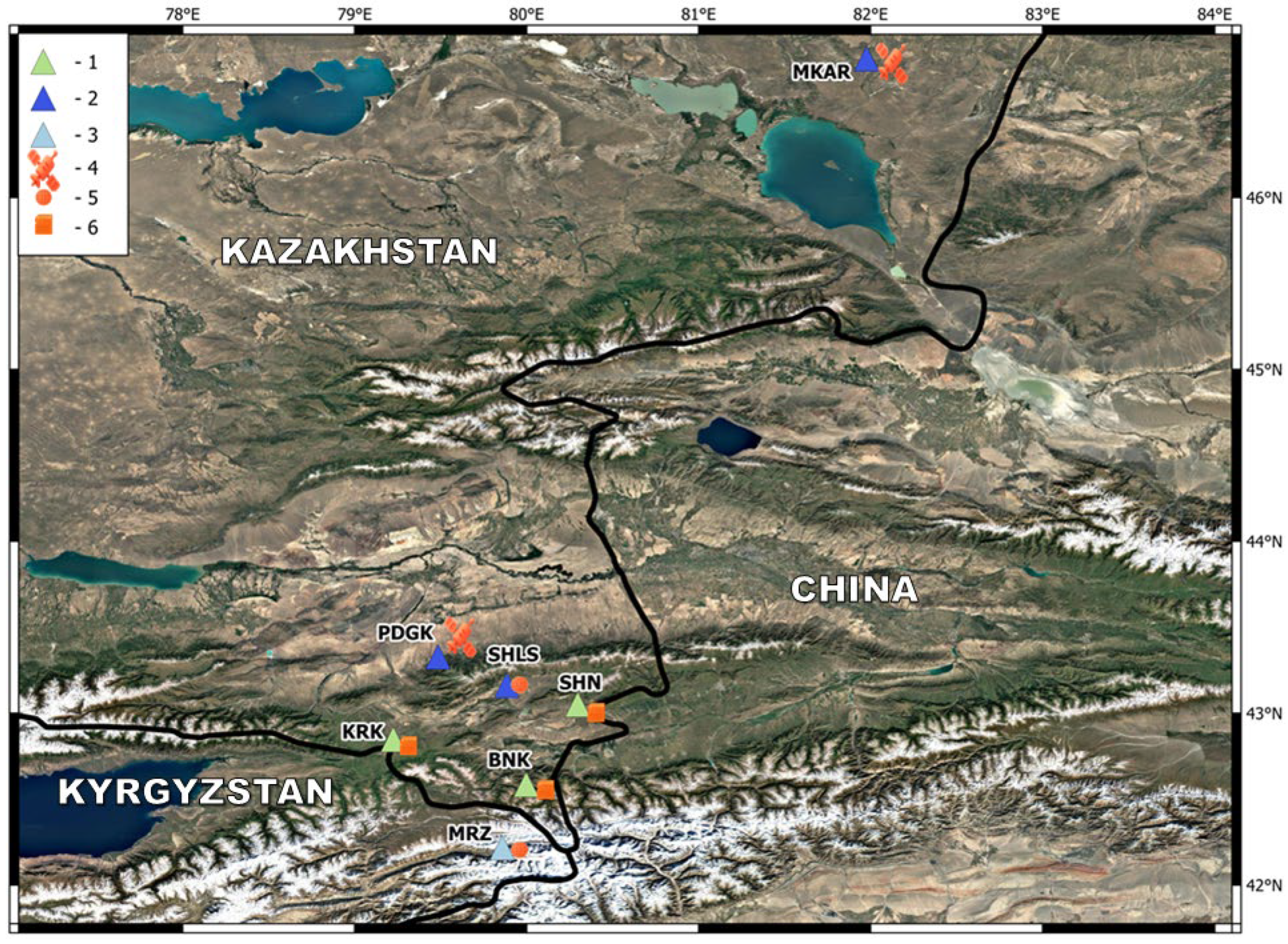 Table 1)—permanent stations Pogronoye (PDGK) of the KZ NNC RK network and Shalkode (SHLS) of the QZ network (SNECCA Project, the operator is NRCSOR) [