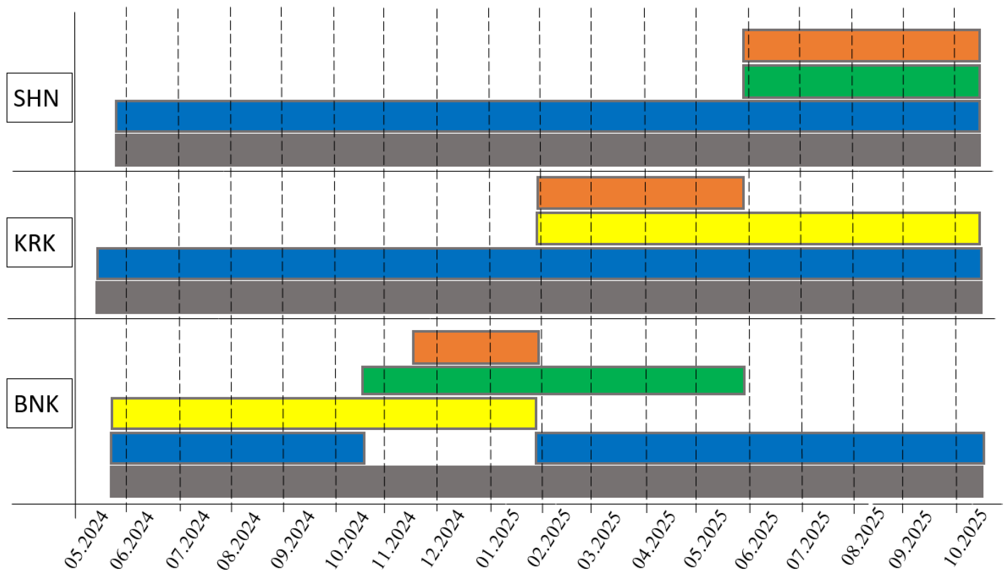 Figure 3 shows a diagram of the field stations’ operational periods and their equipment to study seismic, infrasound, and meteorological parameters. The diagram shows the periods and stations at which comprehensive studies of seismic, infrasound, and meteorological data are possible.