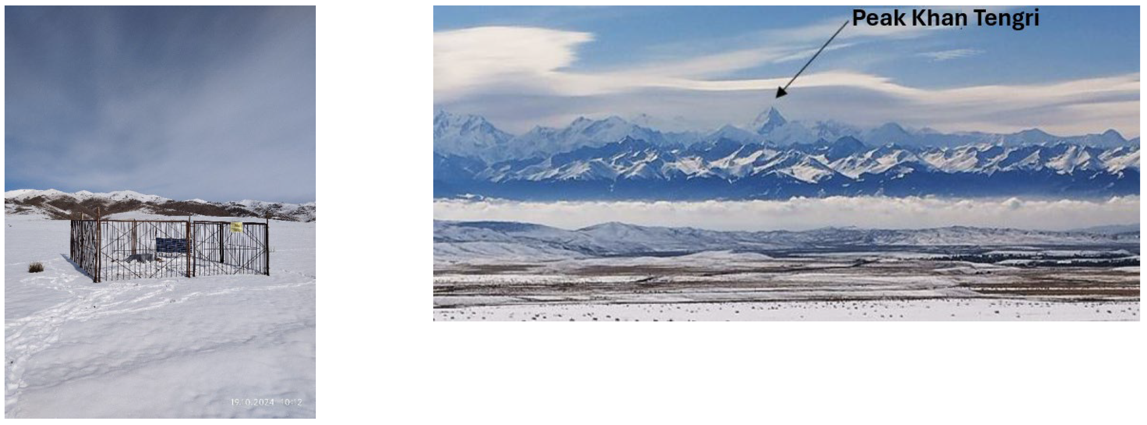 Figure 6 shows a view of the Shynybek station and a view from the station to Khan Tengri peak.