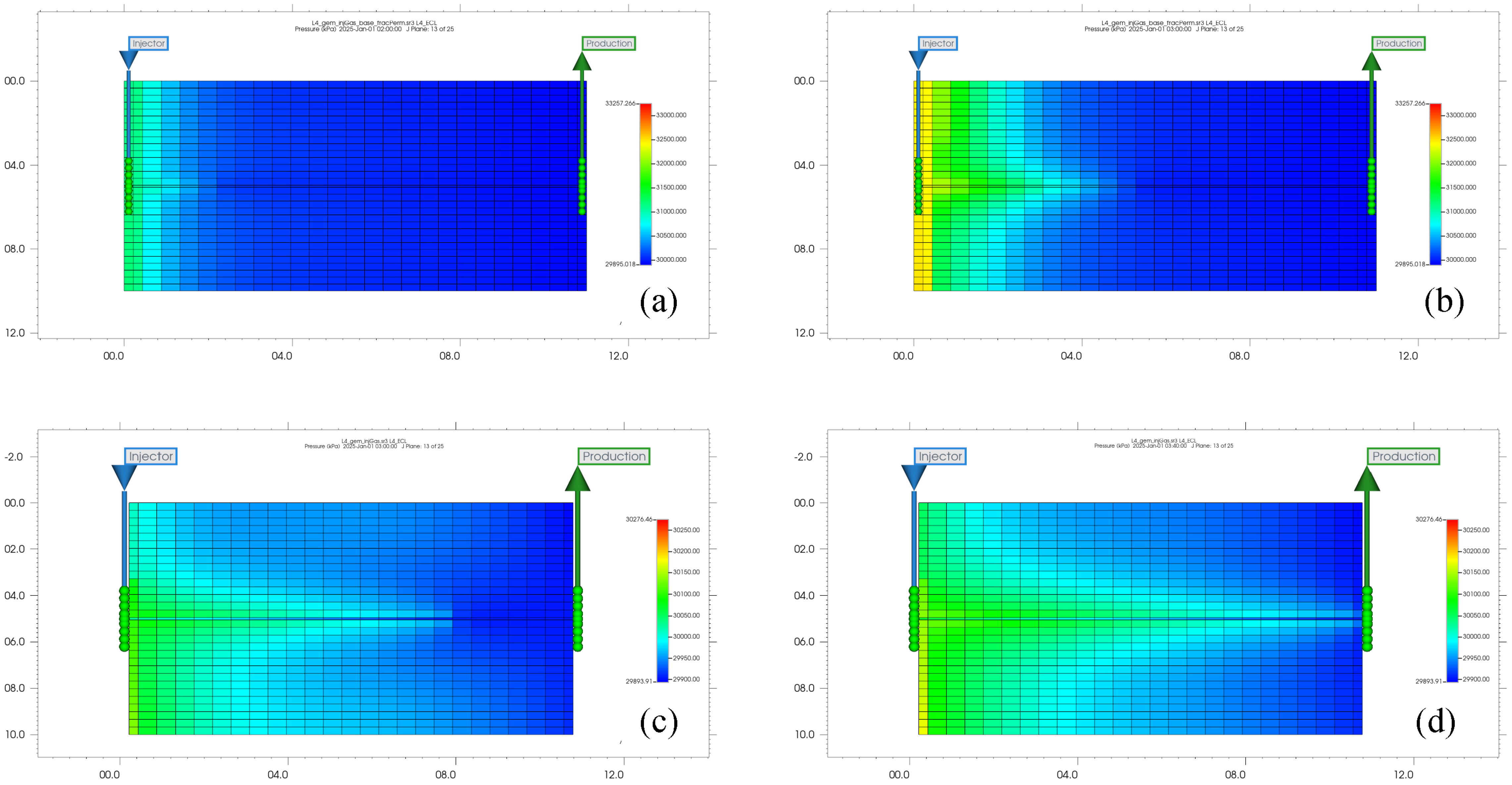 Figure 3. The simulations were run to the same final injection volume under identical physical and operational parameters.