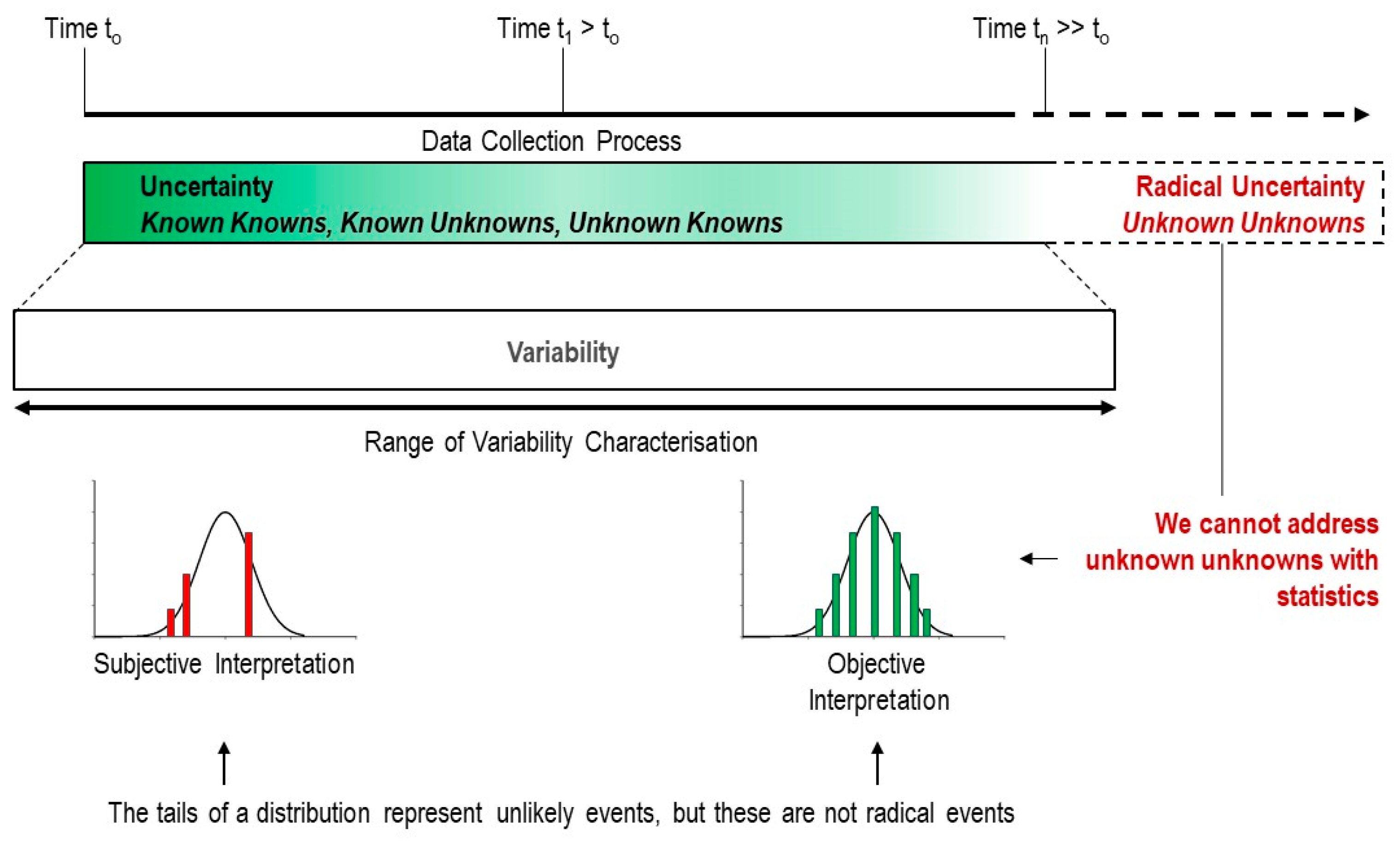 Figure 2. The difference between uncertainty and radical uncertainty and implications for statistical characterization.