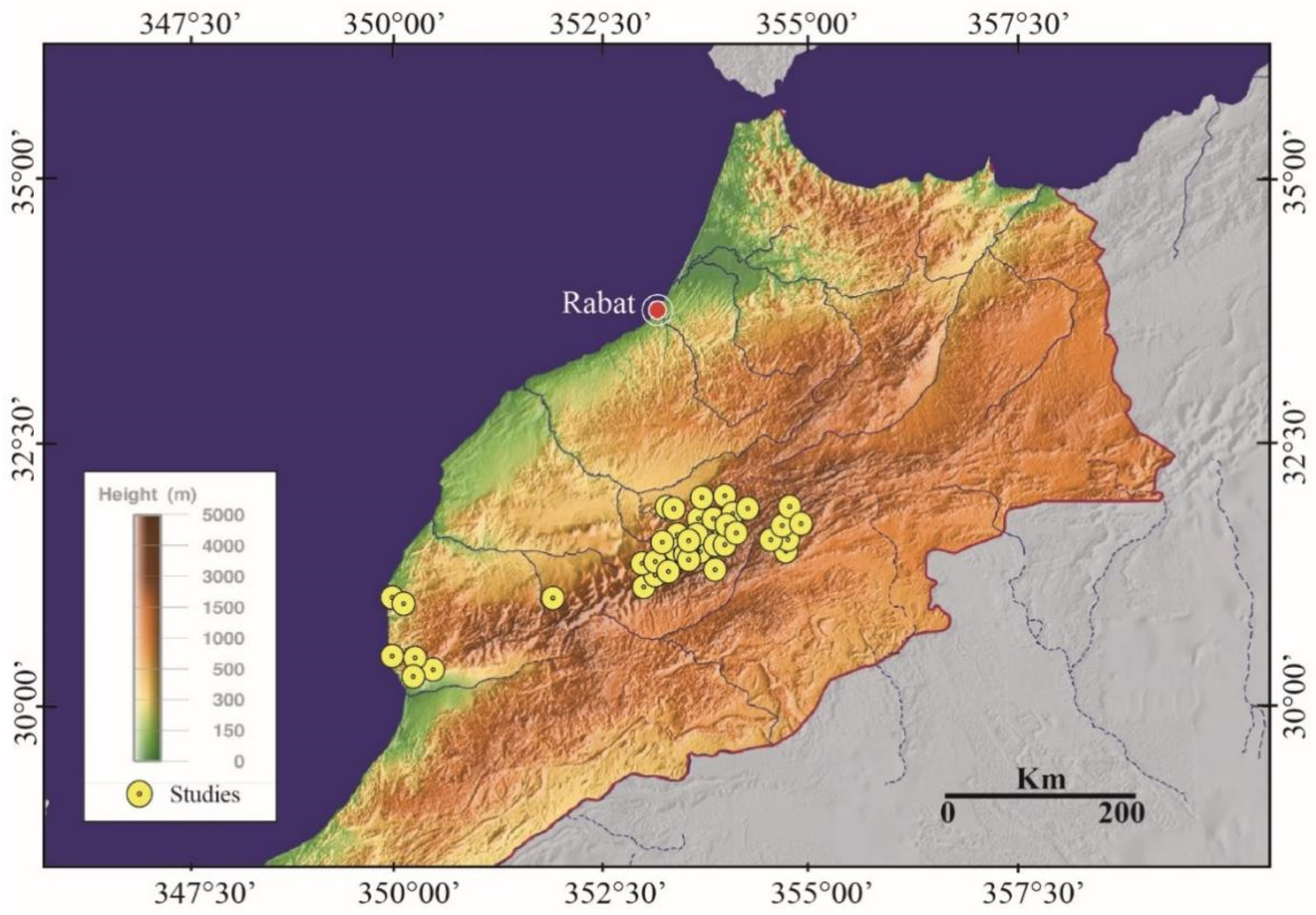 - Beauchamp, W.; Allmendinger, R.W.; Barazangi, M.; Demnati, A.; El Alji, M.; Dahmani, M. Inversion tectonics and the evolution of the High Atlas Mountains, Morocco, based on a geological-geophysical transect. Tectonics 1999, 18, 163–184. [Google Scholar] [CrossRef]