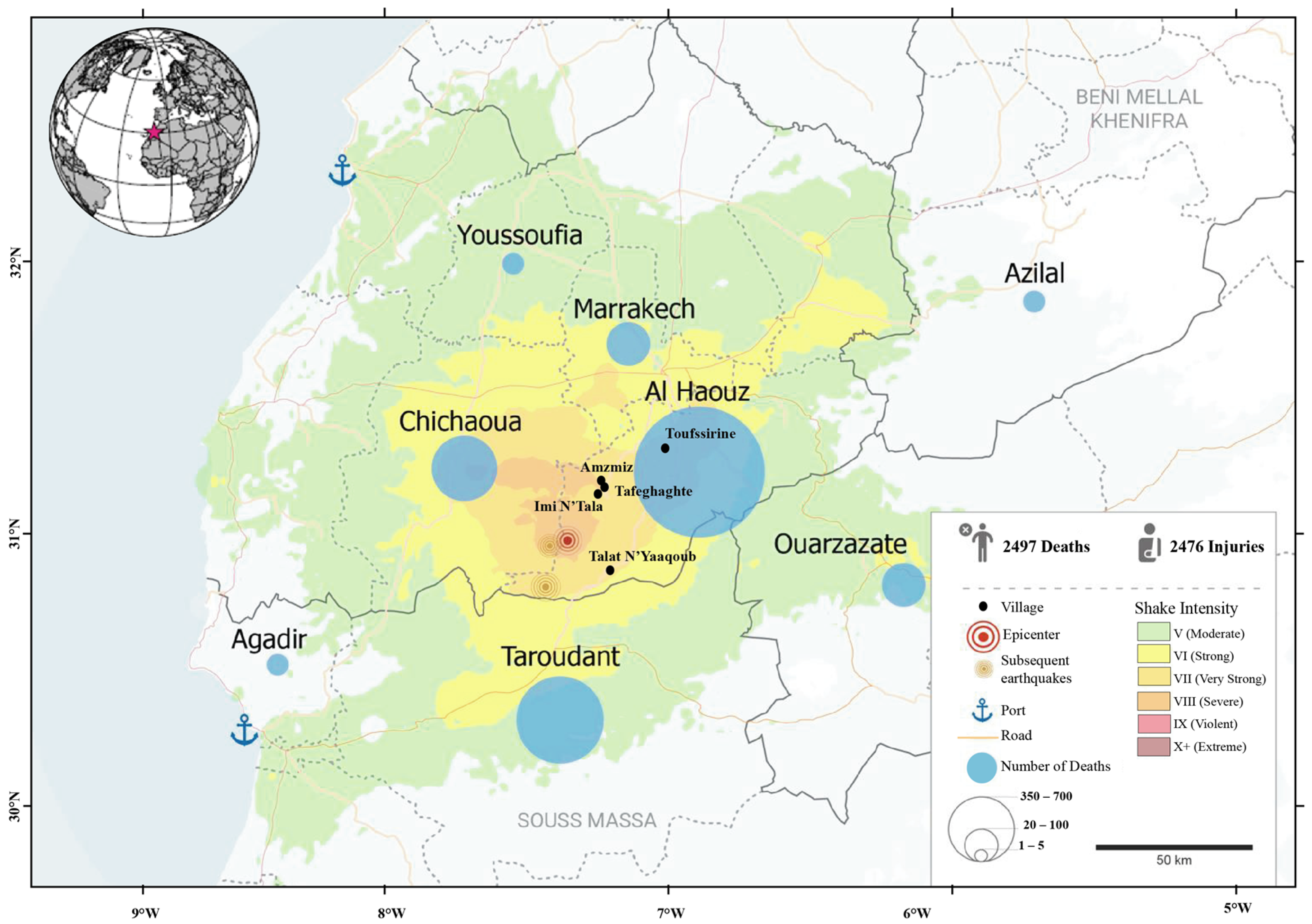4.2. The 2023 Al Haouz Earthquake: Processes and Impacts