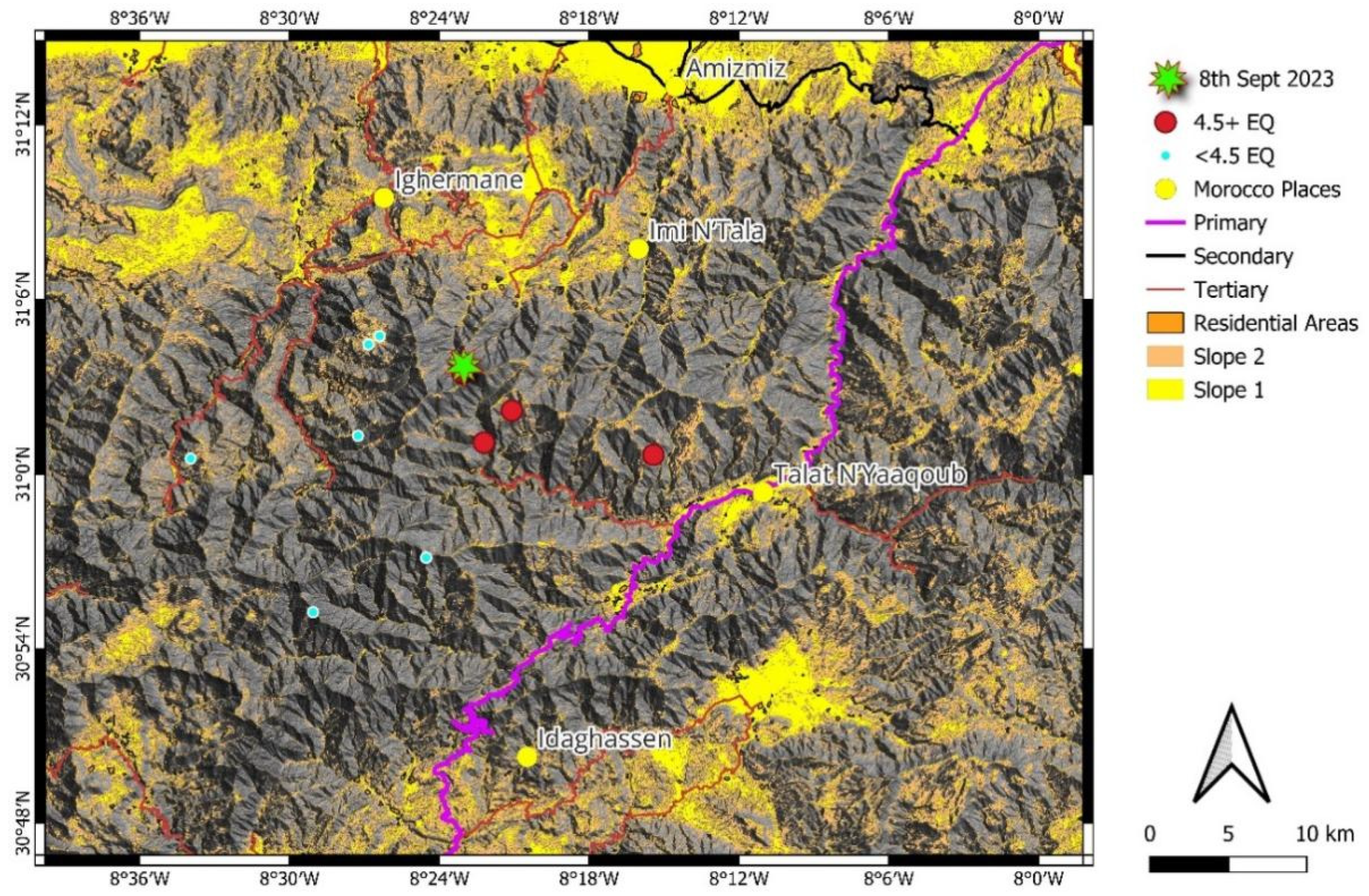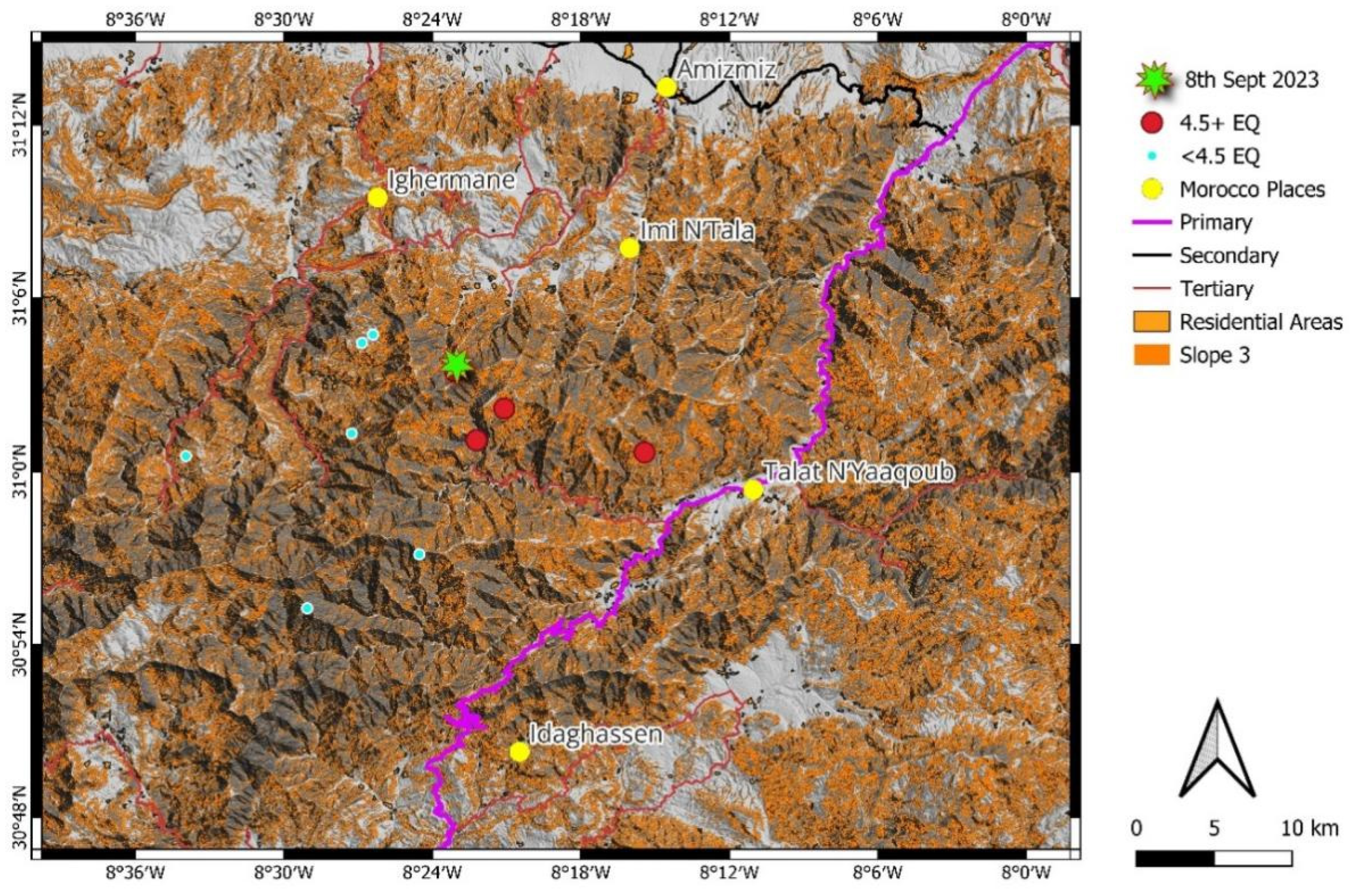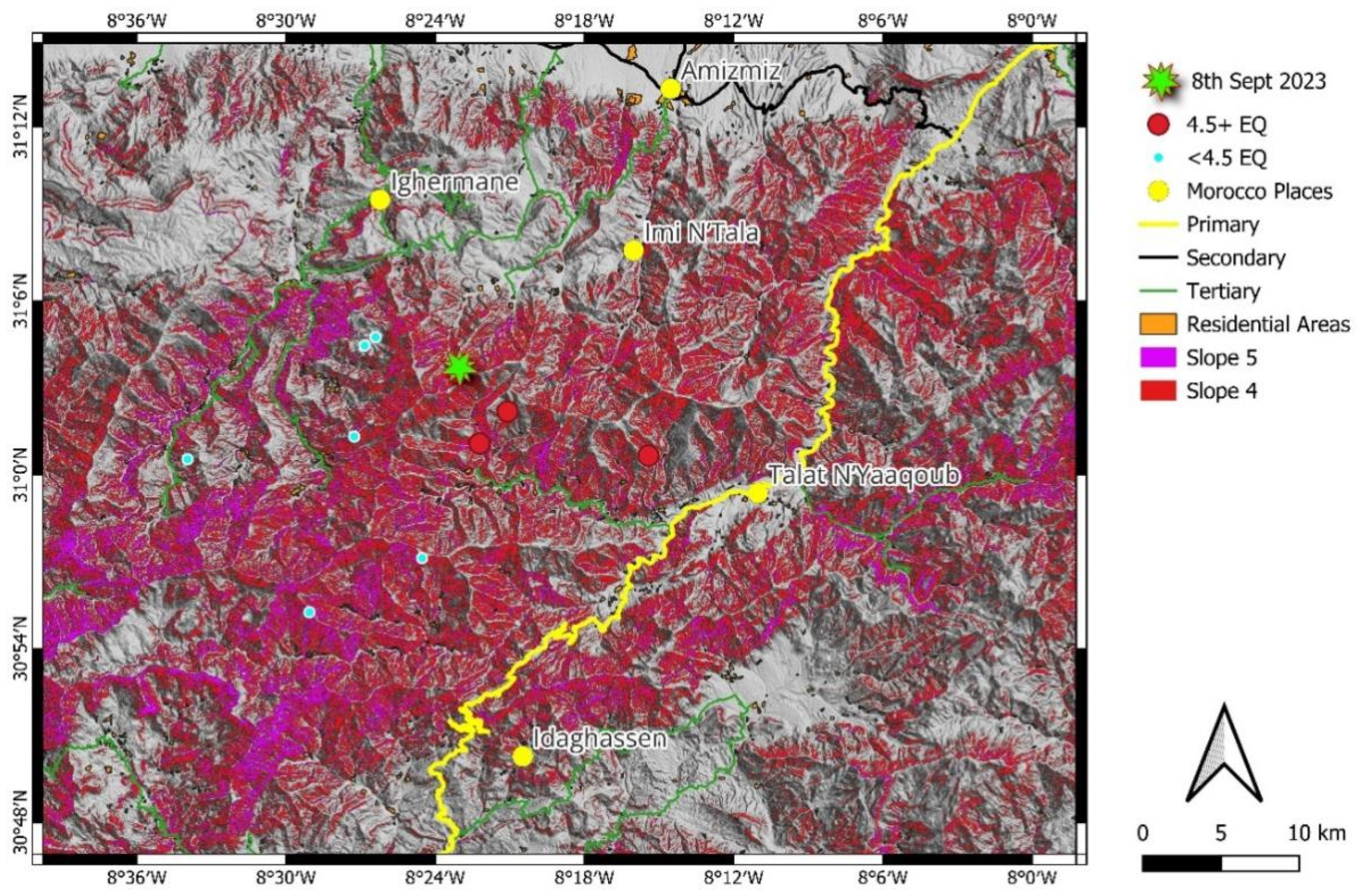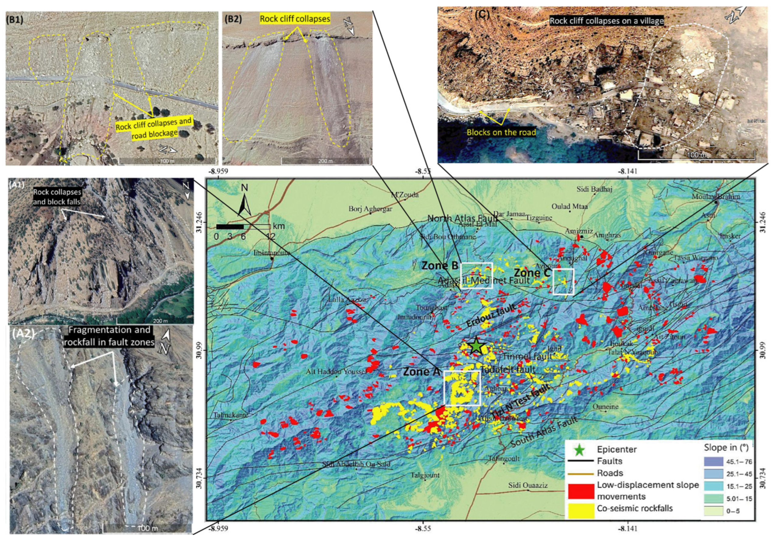 APA StyleHamidy, M. E., & Németh, K. (2026). Manifestations of the 2023 Al Haouz Earthquake as Geoheritage: Geological Processes, Landscape Impacts, and Implications for Geoconservation in the Moroccan High Atlas. Geosciences, 16(2), 76. https://doi.org/10.3390/geosciences16020076