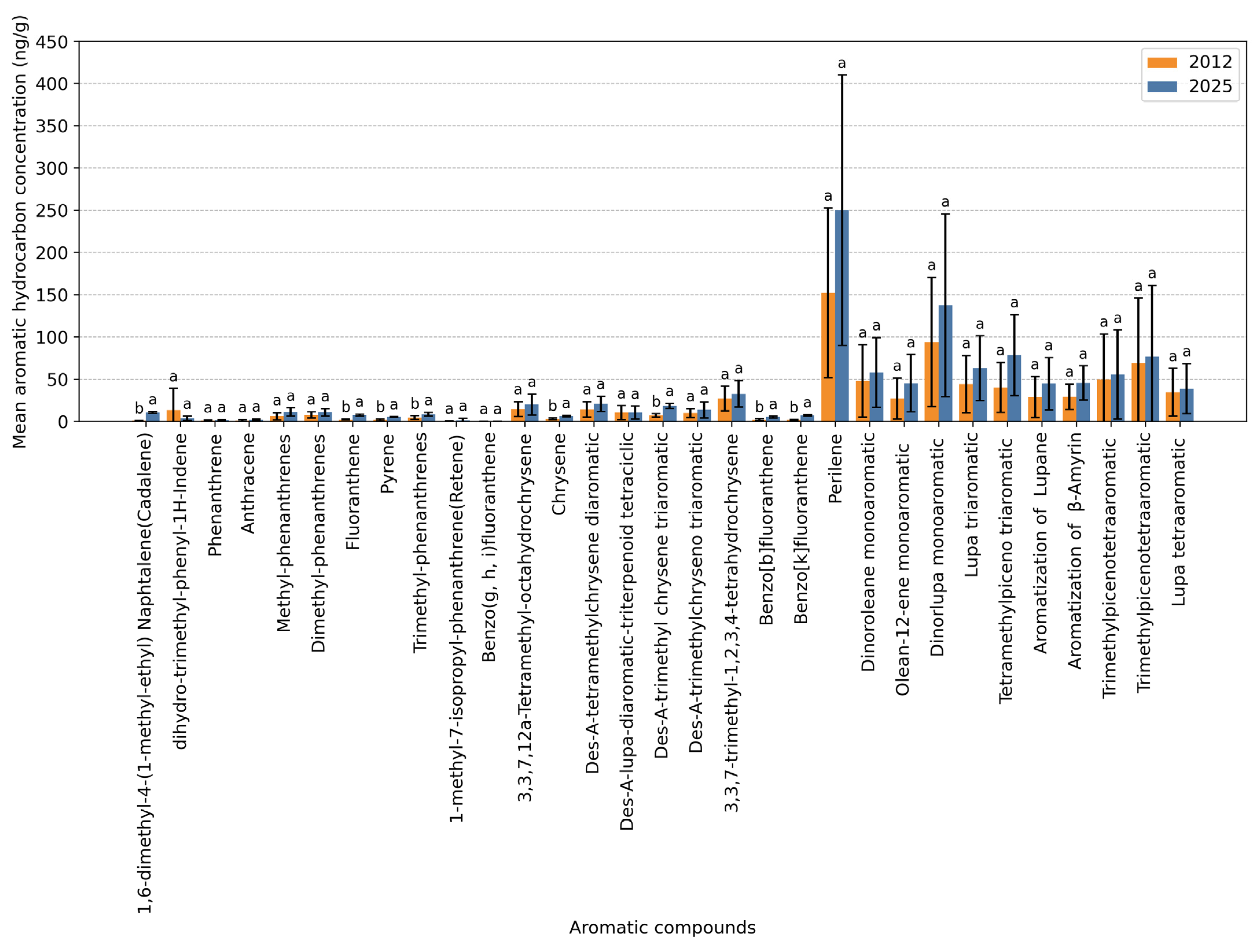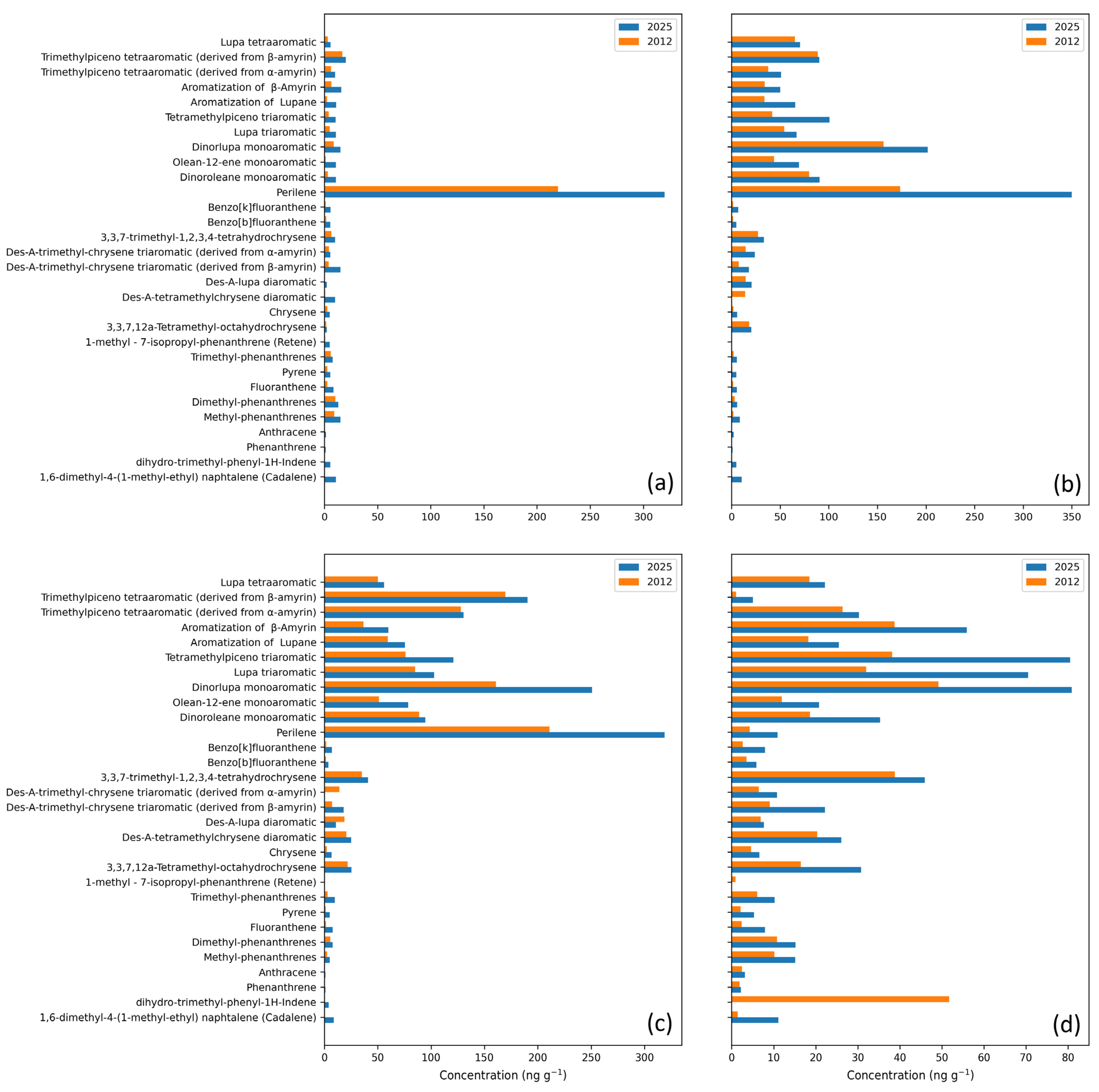 - Zhang, Y.; Li, X.; Wang, J.; Chen, Z.; Liu, H. Recent advances in organic geochemical tracers for source apportionment of hydrocarbons in aquatic sediments. Org. Geochem. 2025, 186, 104746. [Google Scholar]