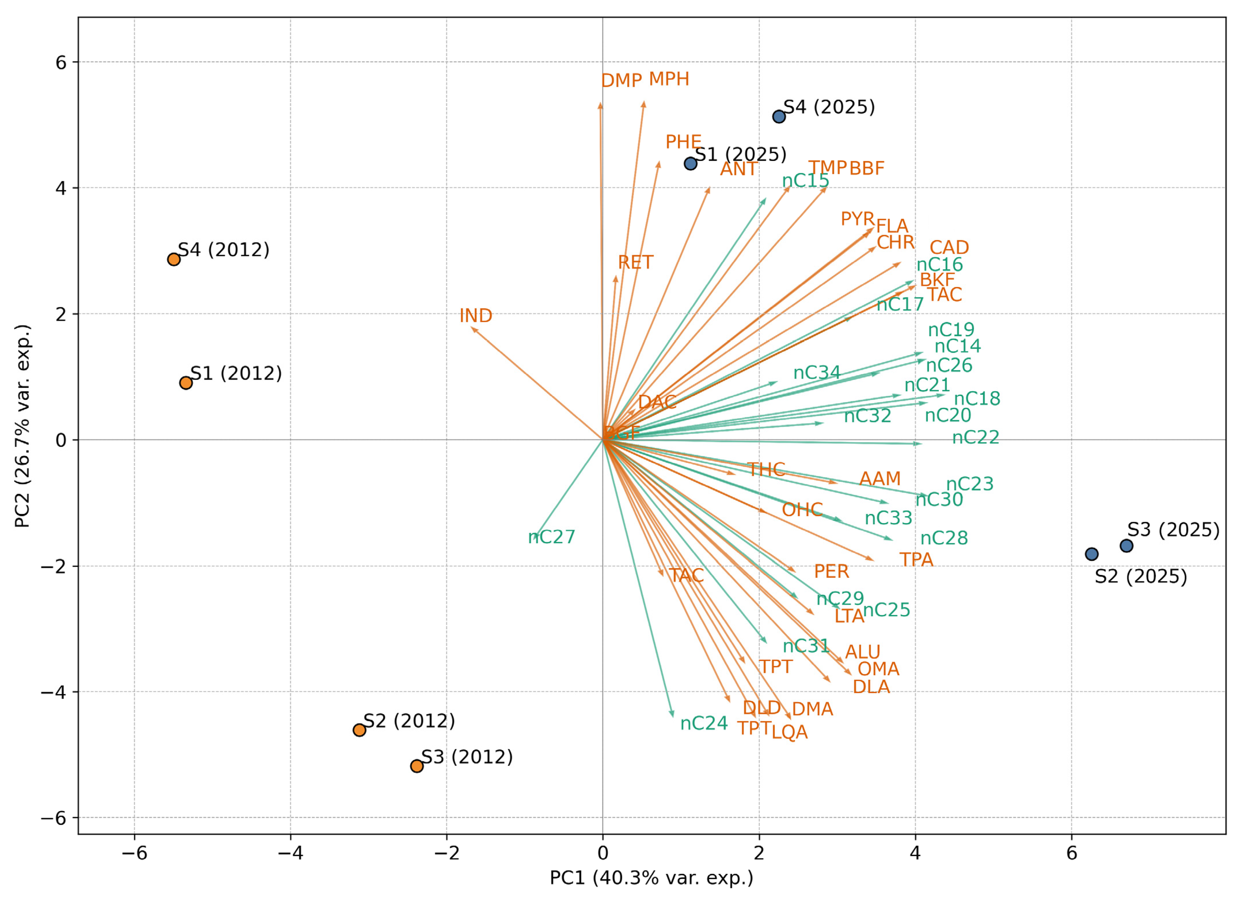 - Ludwik, L.; Szymczak-Żyła, M. Application of various molecular markers for investigating petrogenic inputs in coastal systems strongly impacted by anthropogenic stressors. Mar. Pollut. Bull. 2024, 201, 116224. [Google Scholar] [CrossRef]