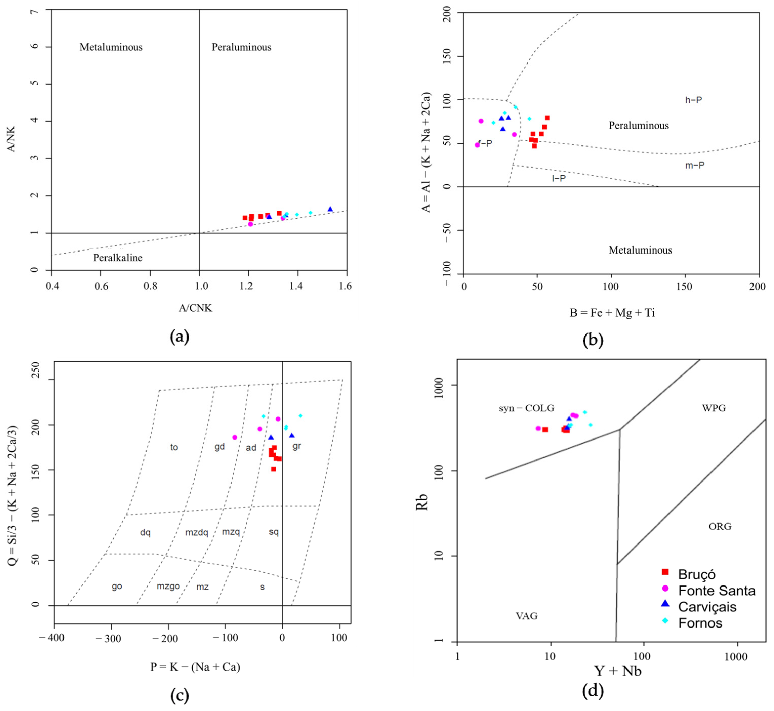 5.1. Petrogenetic Characterisation of the Trás-os-Montes Granites