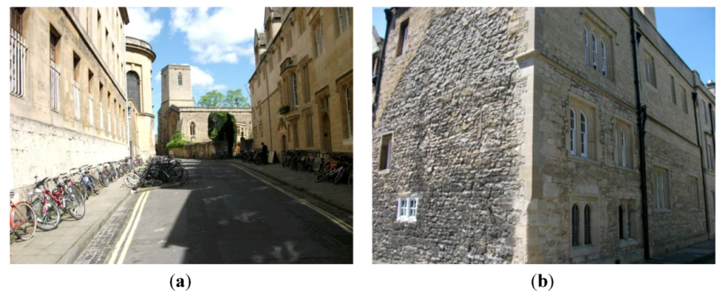 It is possible to devise site-specific weathering classification systems (instruments) for historical monuments comprising cultural stone. In this case, Queen’s Lane in central Oxford was selected for a photographic survey of weathering forms visibly apparent on limestone walls in a part of the city that has not experienced extensive cleaning and restorative works. It is evident, that along major roadways with much pedestrianisation, such as the High Street, there are more attempts to maintaining clean, unblemished (presentable) stone-work. Gratefully, this portion of the city centre, has been pedestrianised and retains much of its original stone-work. For this reason, it presents an ideal site for the development of a weathering index for use in the classification of weathering forms found on historical buildings comprised of limestone.