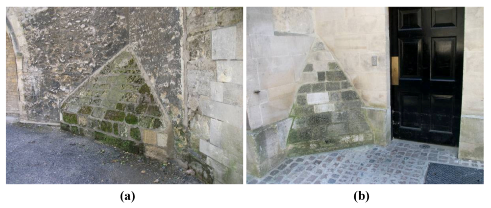 - Thornbush, M.J.; Viles, H.A. Photo-Based Decay Mapping of Replaced Stone Blocks on the Boundary Wall of Worcester College, Oxford. In Building Stone Decay: From Diagnosis to Conservation; Přikryl, R., Smith, B.J., Eds.; Geological Society: London, UK, 2007; pp. 69–75, Special Publications No. 271. [Google Scholar]