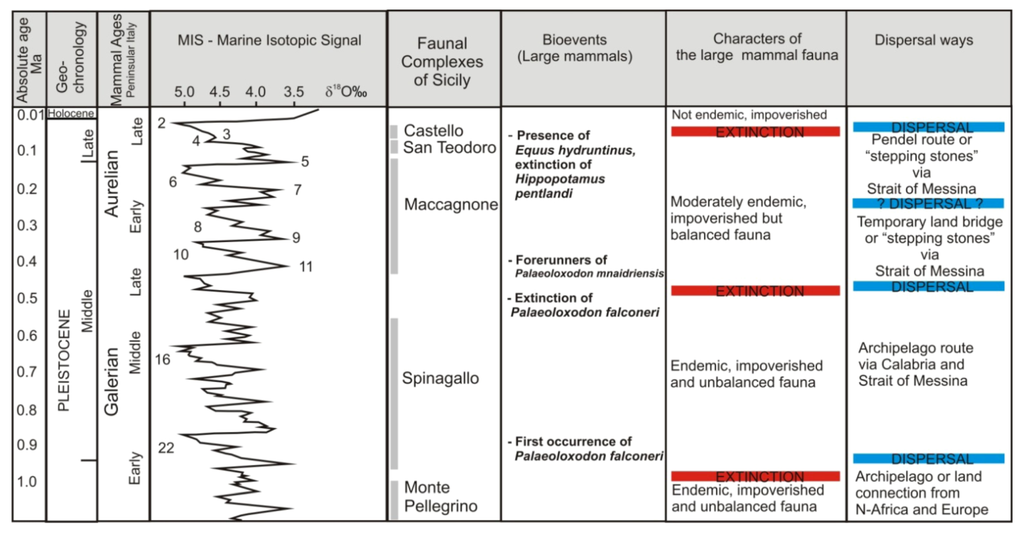 The Spinagallo faunal complex is early Middle Pleistocene in age and is strongly impoverished in number of species (Figure 3), as well as unbalanced in ecological composition [2,5].