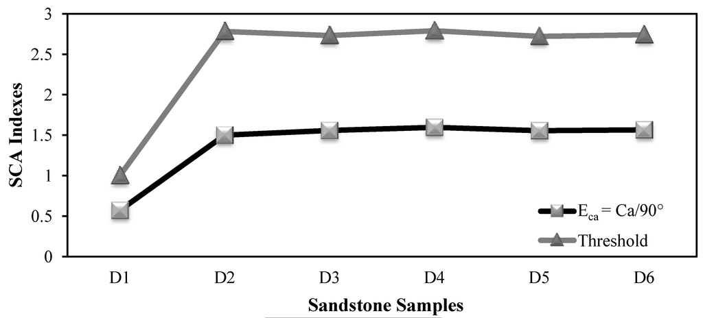 | Sample | Static Contact Angle (°C) | Eca = CA/90° | Threshold |