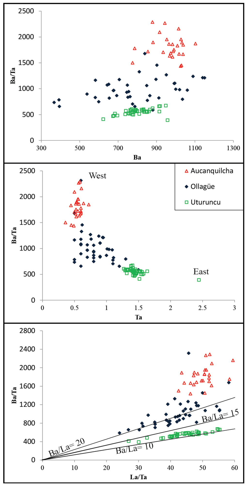 Representative new whole rock trace element ratios from Cerro Uturuncu.