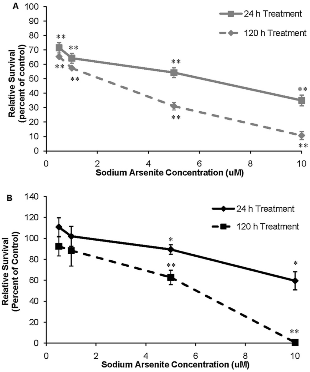 - Sherwood, C.L.; Lantz, R.C.; Boitano, S. Chronic arsenic exposure in nanomolar concentrations compromises wound response and intercellular signaling in airway epithelial cells. Toxicol. Sci. 2012, 132, 222–234. [Google Scholar] [CrossRef]