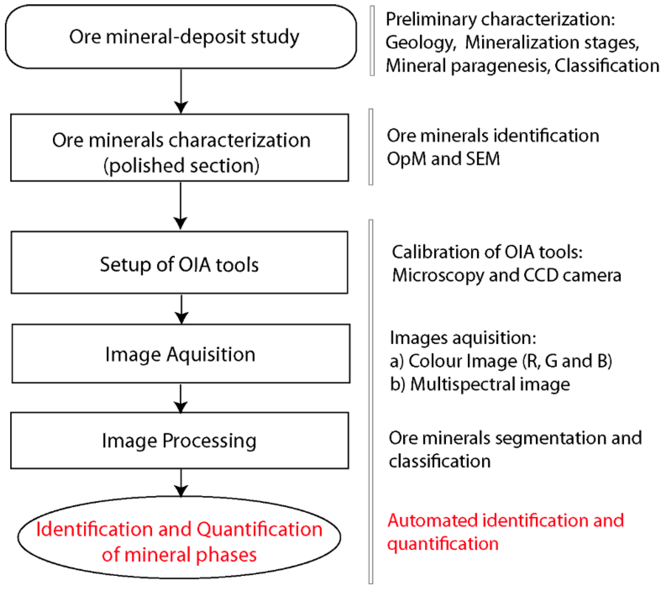 Schematic representation of the sequence of ore mineral identification and quantification using OIA. Based on [6].