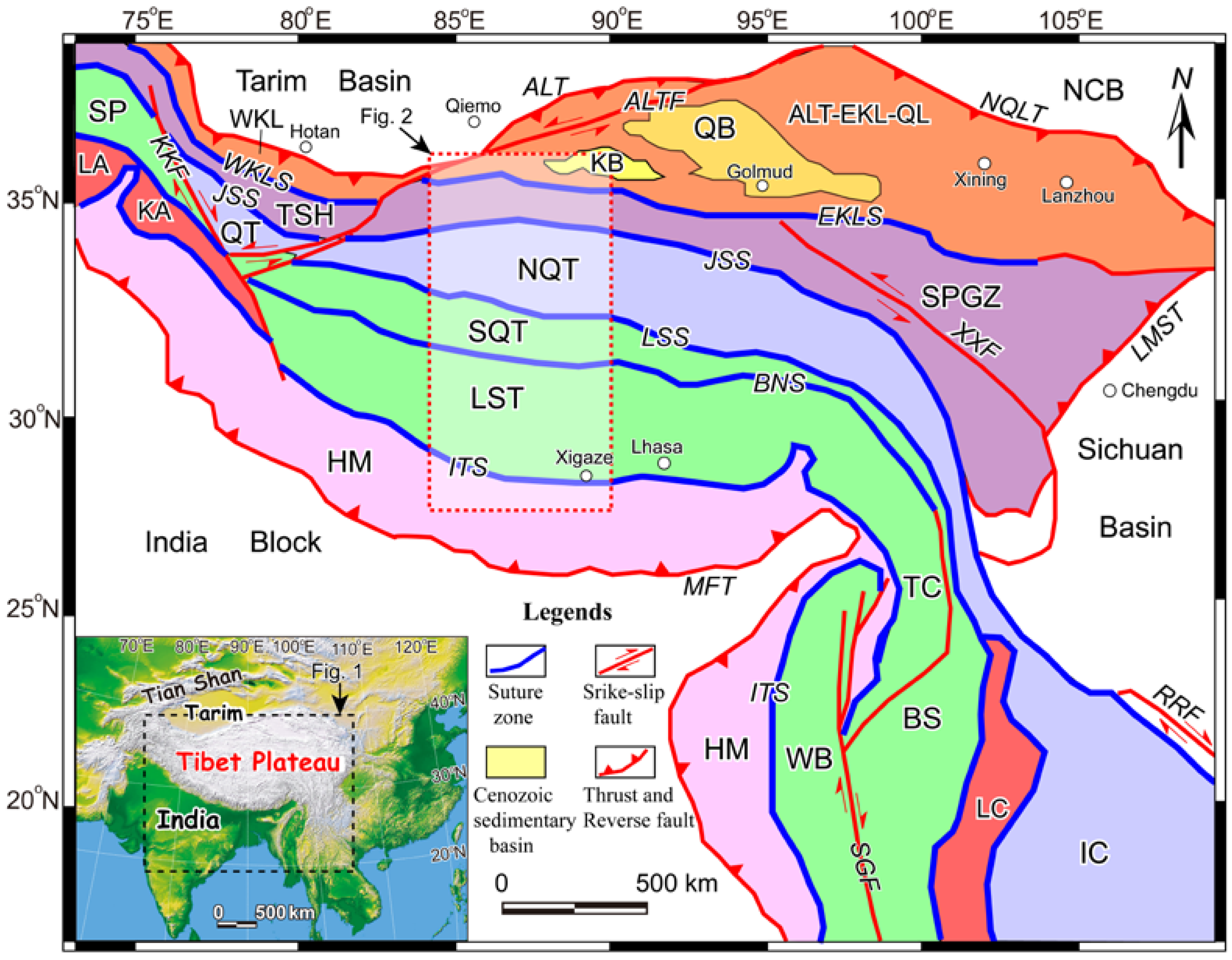 - Pan, G.; Wang, G.; Li, R.; Yuan, S.; Ji, W.; Yin, F.; Zhan, W. Tectonic evolution of the Qinghai-Tibet Plateau. J. Asian Earth Sci. 2012, 54, 3–14. [Google Scholar] [CrossRef]