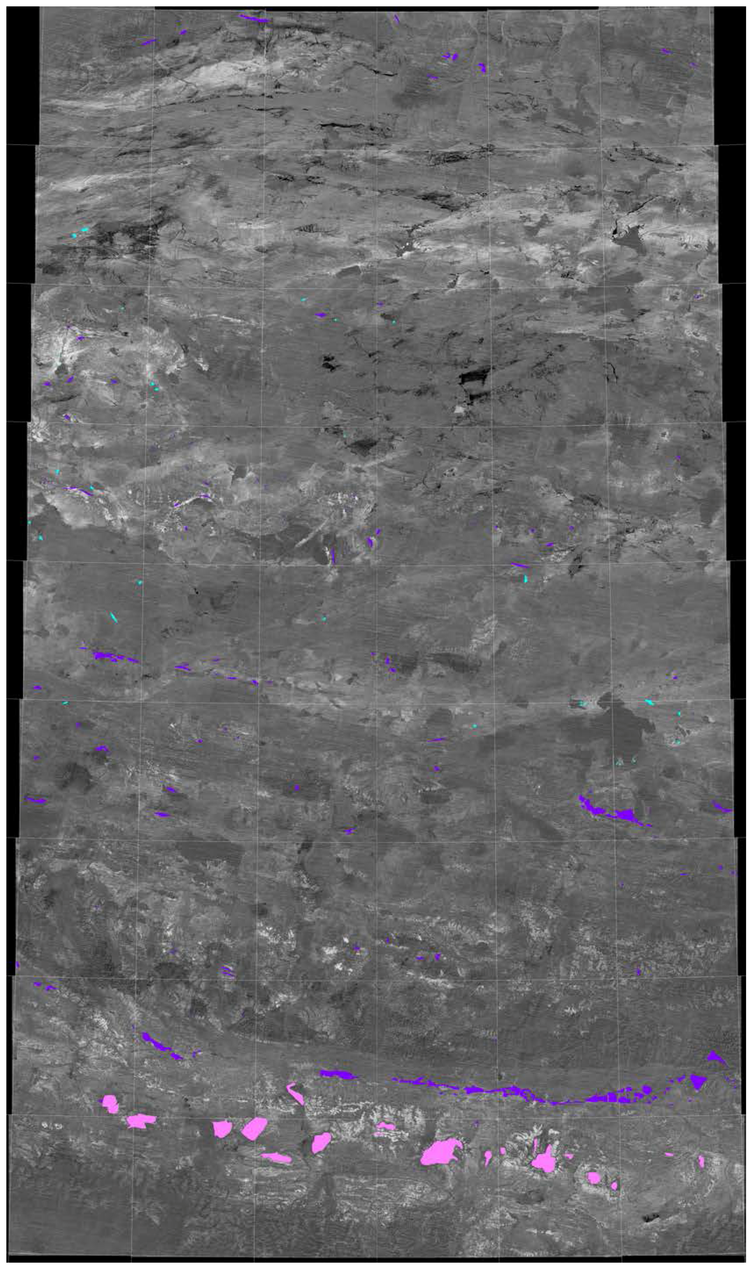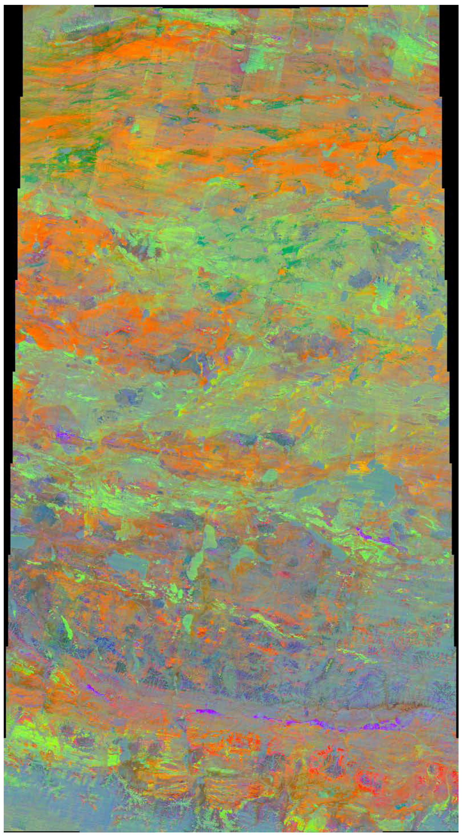 | Feldspar-poor granitic rocks | Granitic rocks related to metamorphic domes | Image pattern | Dark pinkish purple | Not clear | Not yet (this study partially attempts) |